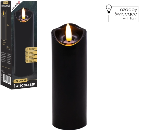 Bougie LED élégante en finition noire avec une lumière blanc chaud réaliste et doucement vacillante. Idéale comme décoration d’intérieur ou comme bougie à insérer dans une lanterne ou un bougeoir. Pratique grâce à l’alimentation par 2× piles AA (non incluses) et au commutateur On/Off simple d’utilisation.