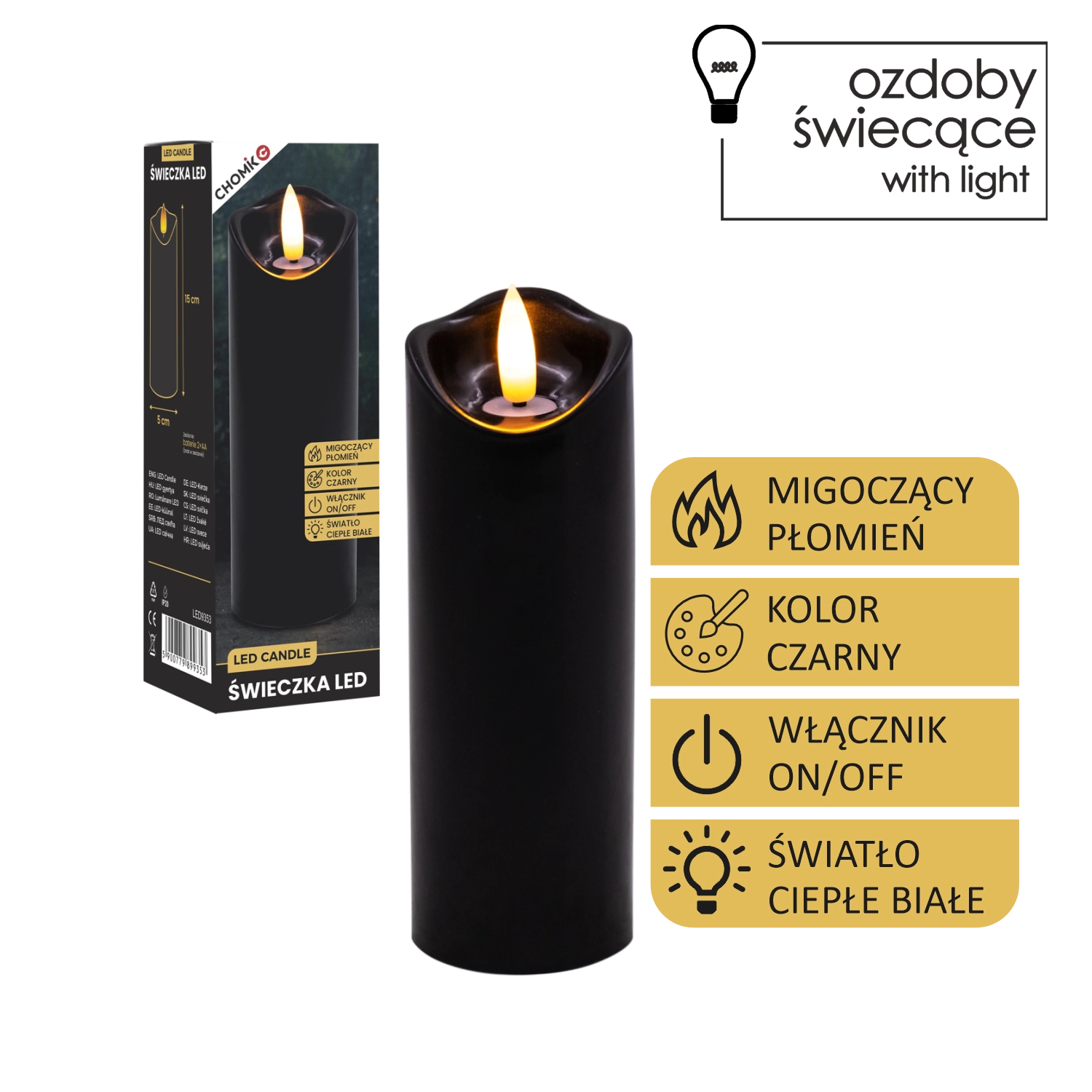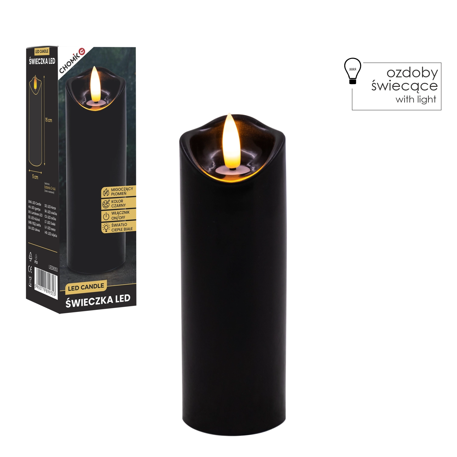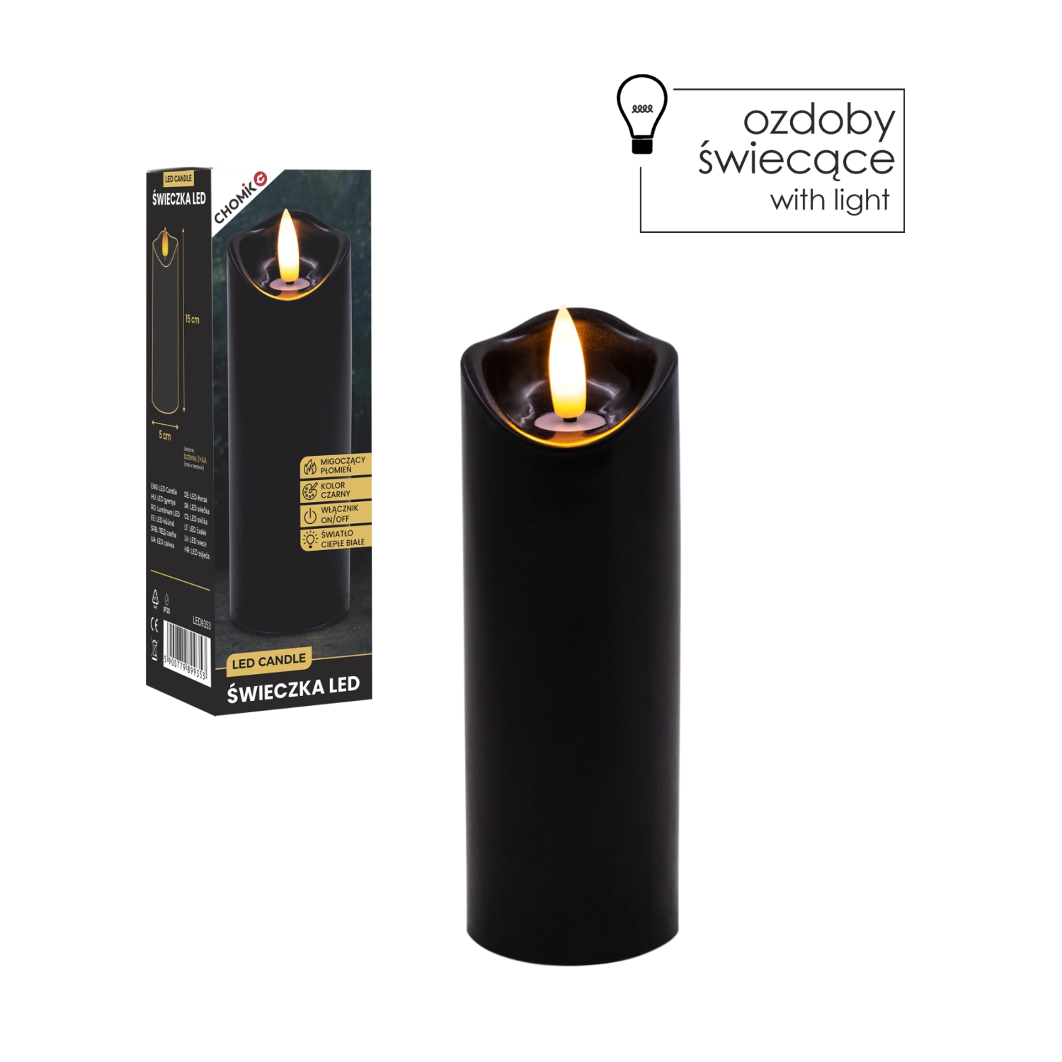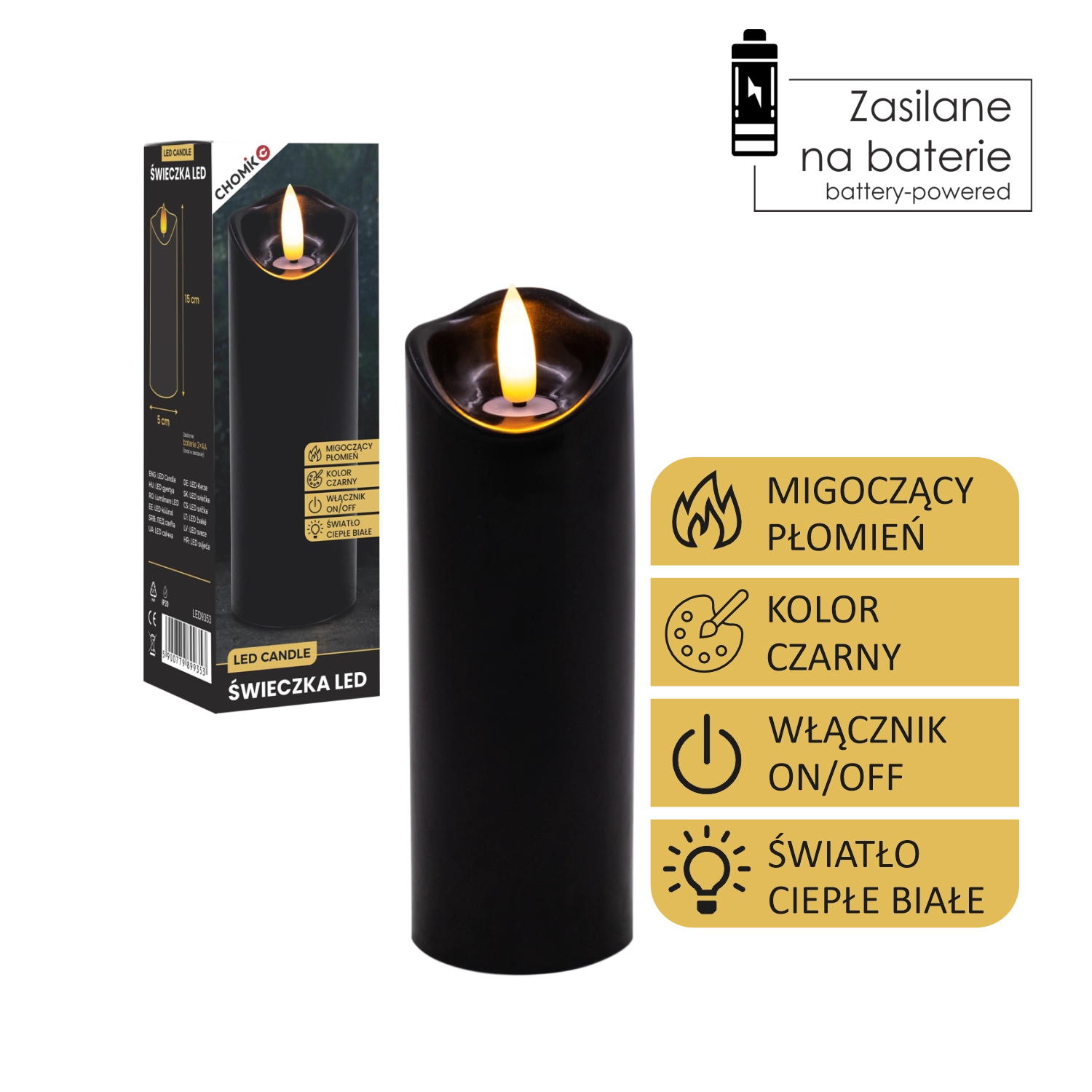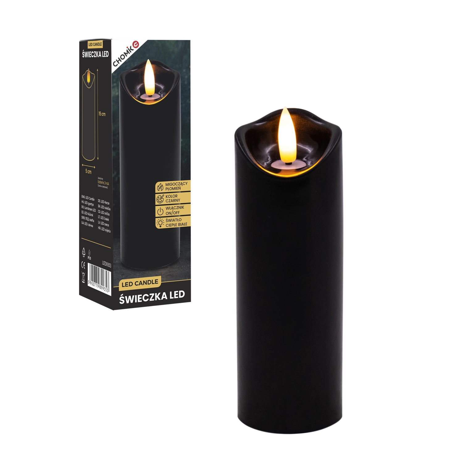 Une solution sûre et pratique pour les foyers avec enfants et animaux de compagnie – aucune flamme nue ni cire chaude. Grâce à l’alimentation par piles, vous pouvez placer la bougie où vous voulez créer une lumière cosy.