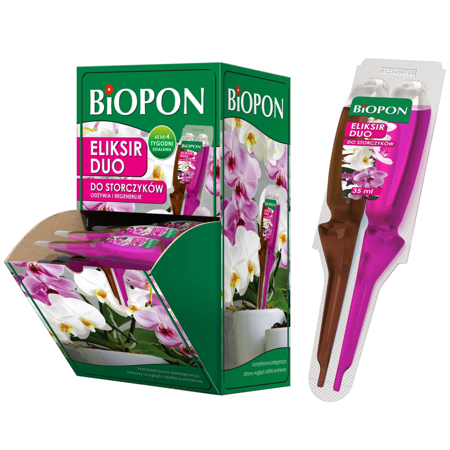L’application est extrêmement simple : le double applicateur pratique libère simultanément les deux composants dans des proportions précises. L’élixir convient aussi bien à la réanimation rapide des orchidées affaiblies à croissance lente, floraison faible ou racines desséchées, qu’à la prévention sur des plantes saines afin qu’elles conservent un aspect frais et des couleurs intenses des fleurs et des feuilles.
