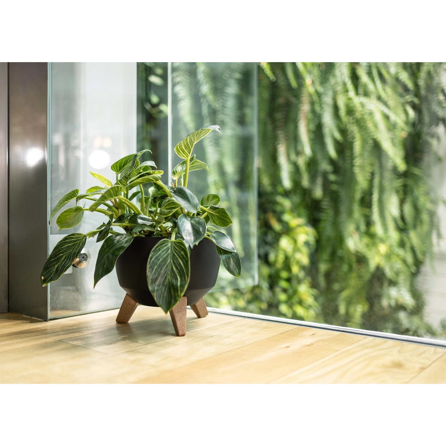 Trois pieds robustes en matériau écologique imitant le bois assurent la stabilité et une présentation plus aérée de la plante.