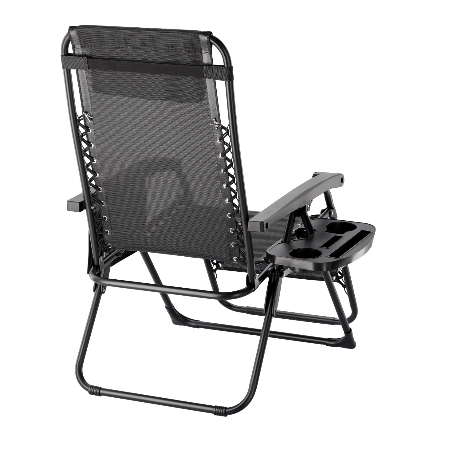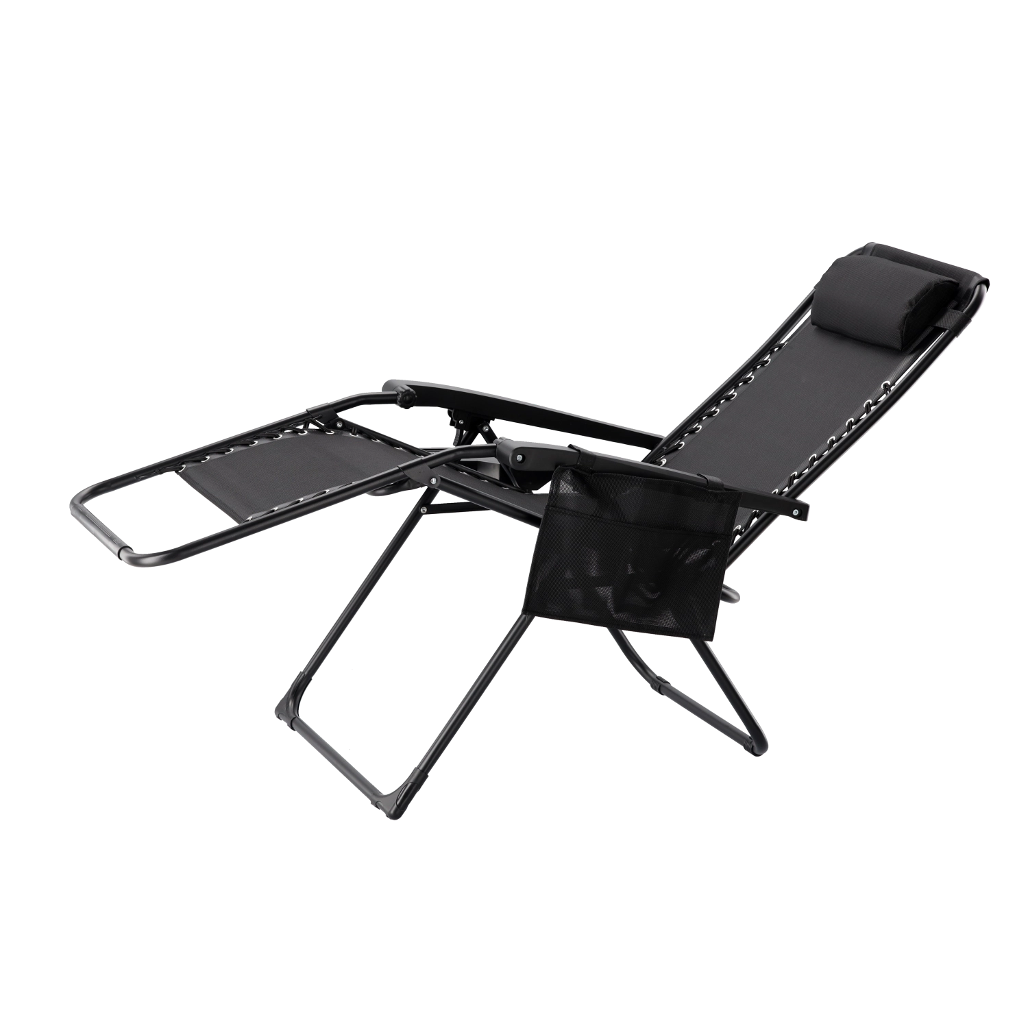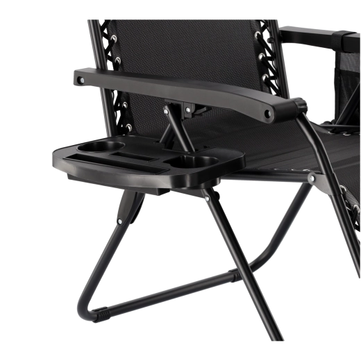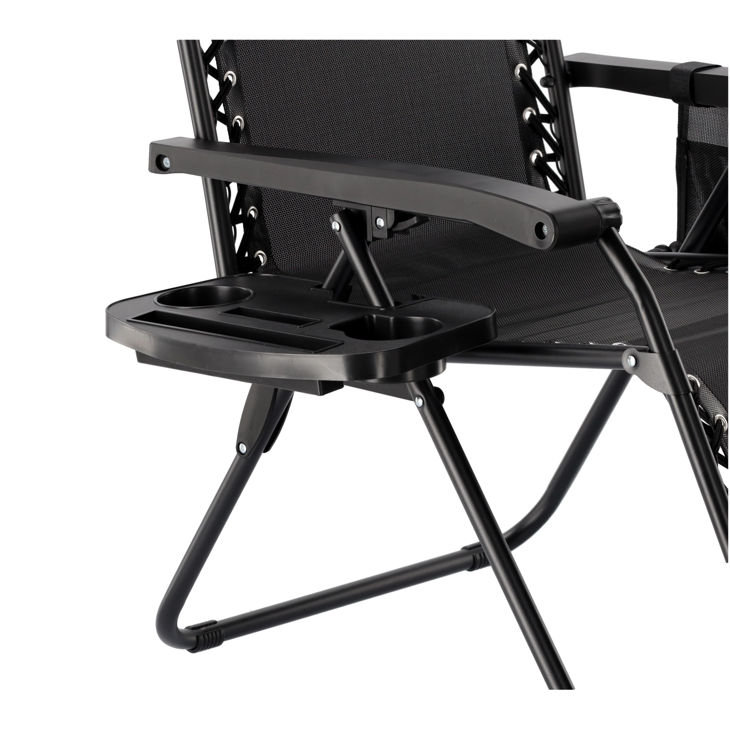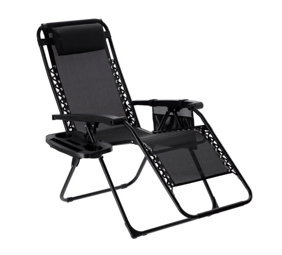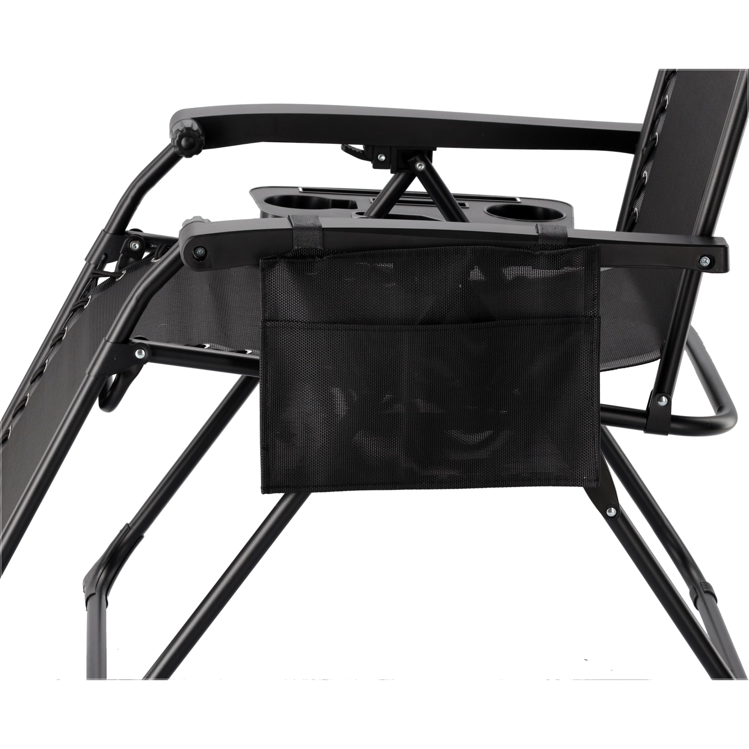 Chaise longue de jardin réglable Zero Gravity, pliante, avec plateau porte-boisson et poche, noire 65 × 176 × 110 cm