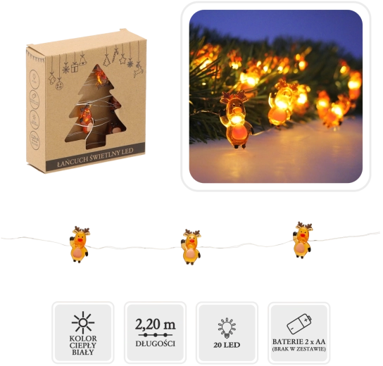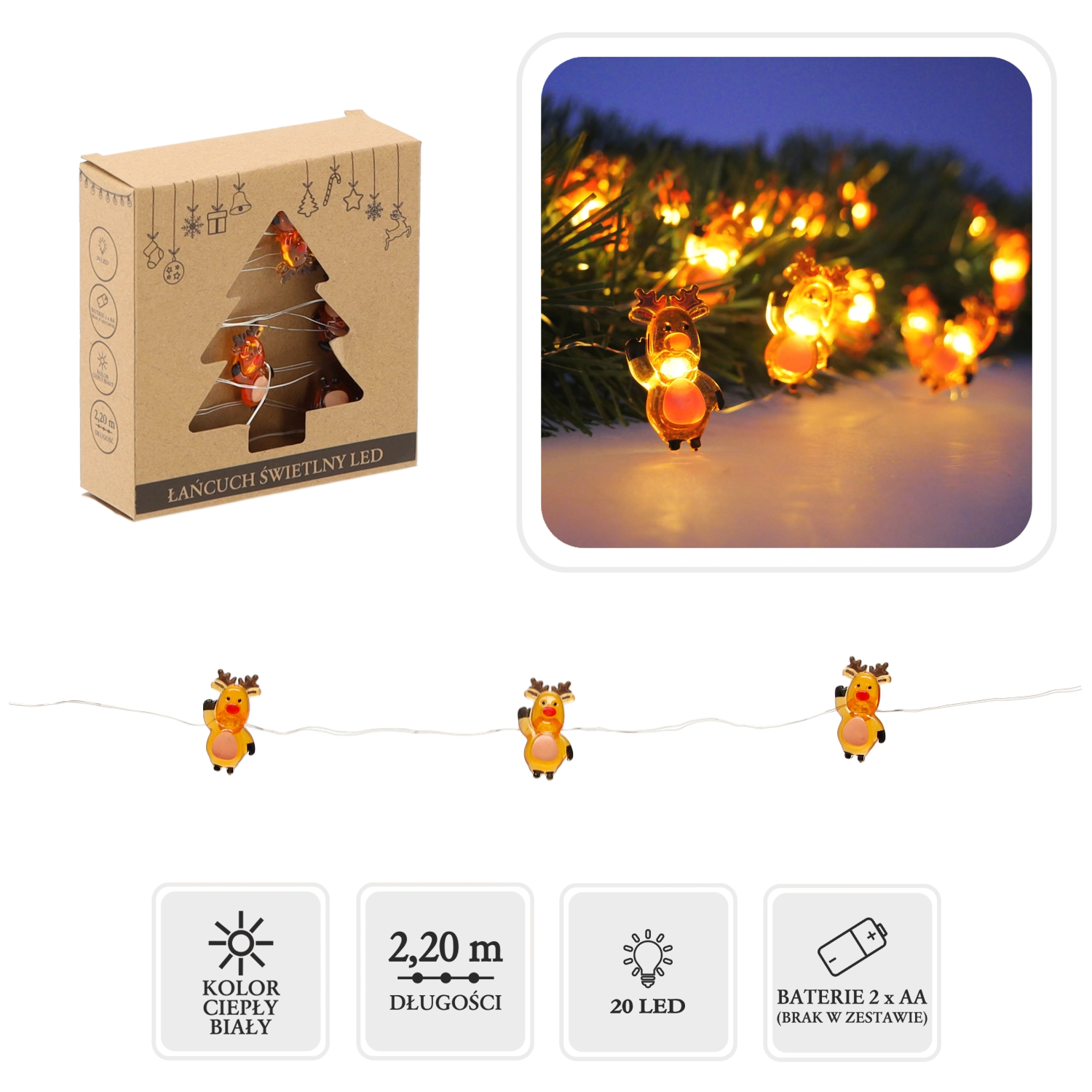 Guirlande lumineuse LED motif rennes, 20 lumières, à piles