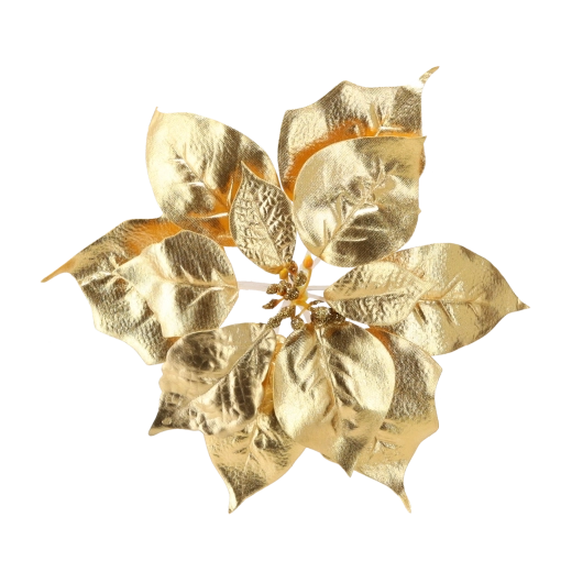Élégante poinsettia artificielle de 25 cm de diamètre au luxueux fini doré, apportant à votre intérieur un éclat festif et du style. Grâce au clip pratique, vous l’attachez facilement au sapin de Noël, aux couronnes, guirlandes ou cadeaux. Le matériau de qualité avec un décor brocart délicat garantit une durabilité et un aspect réaliste sans entretien.