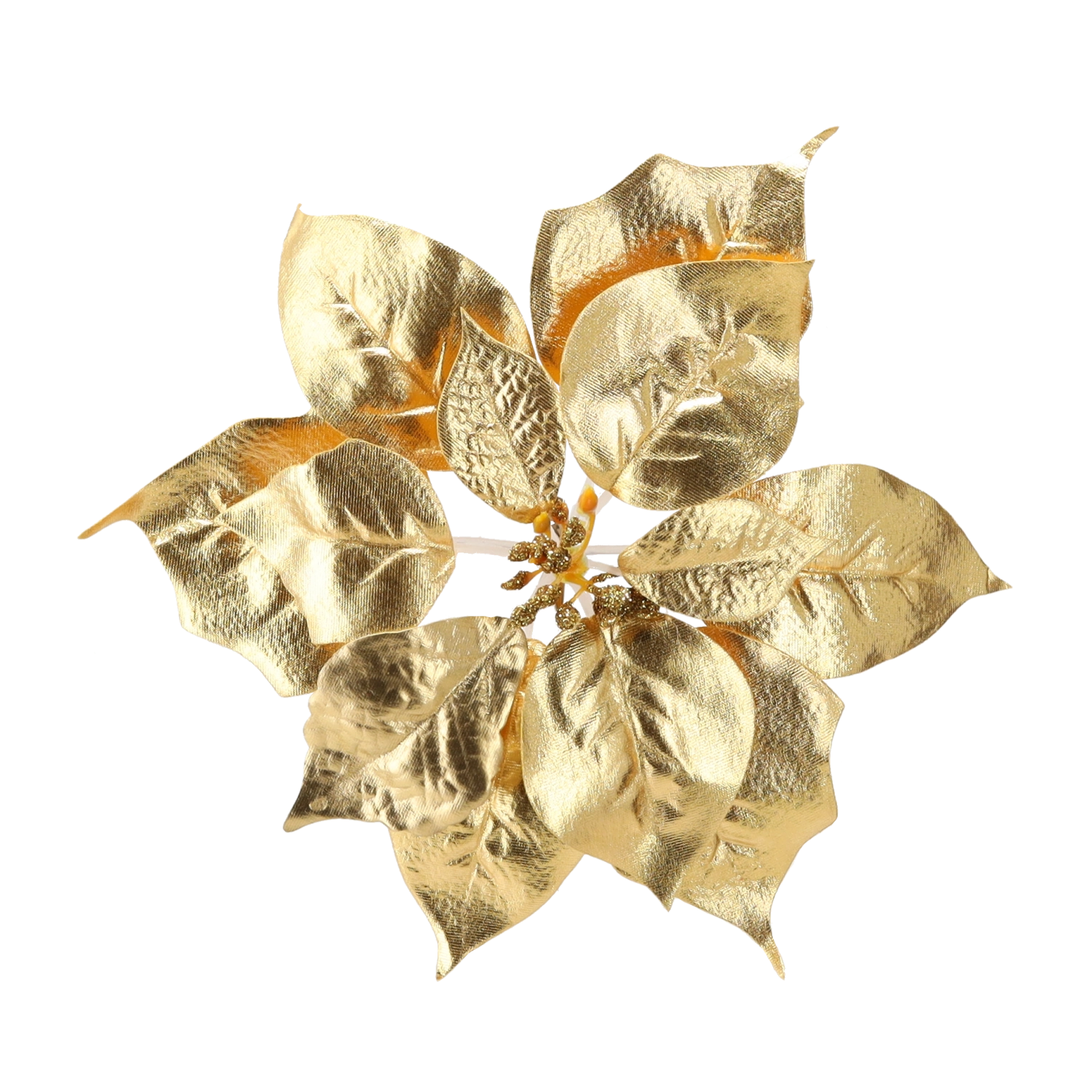 Fleur de poinsettia de Noël sur clip 25 cm – doré