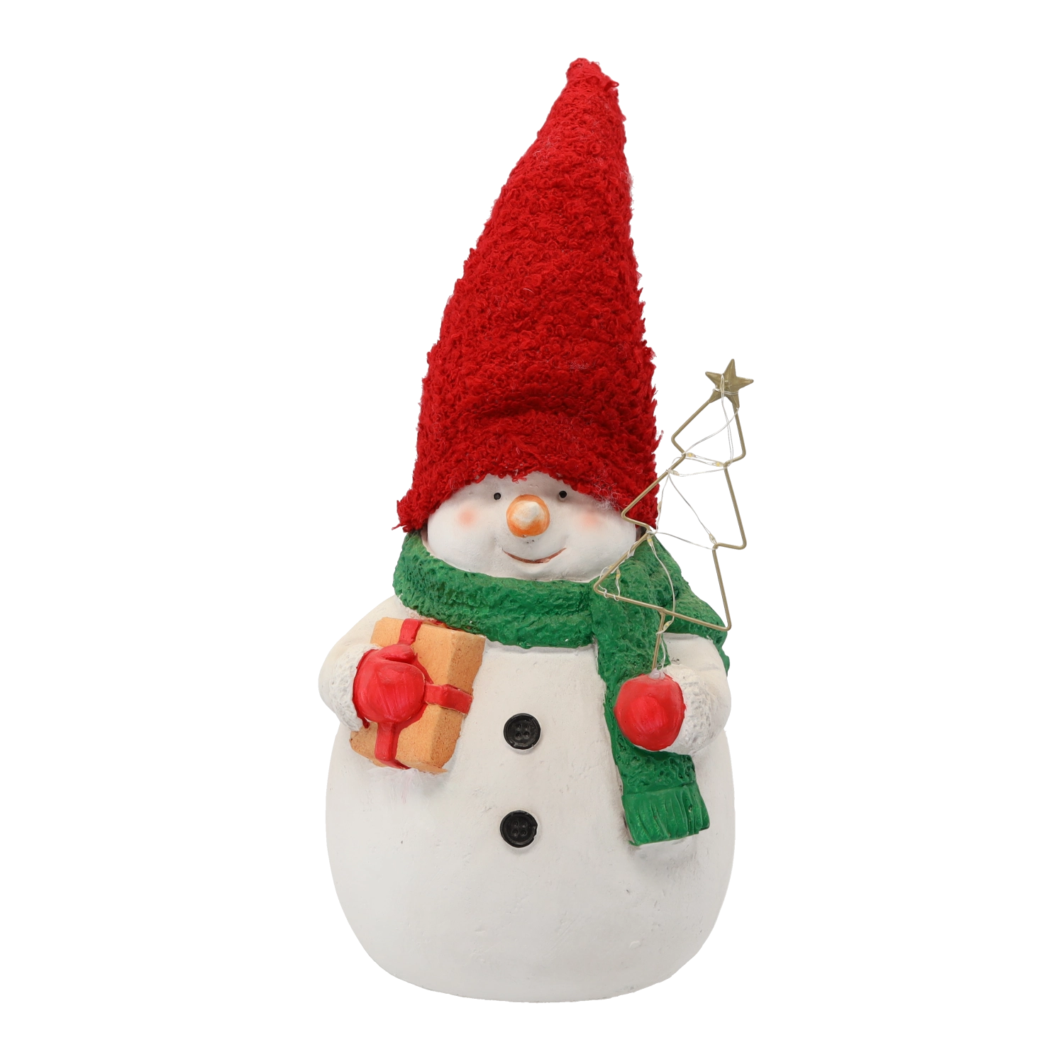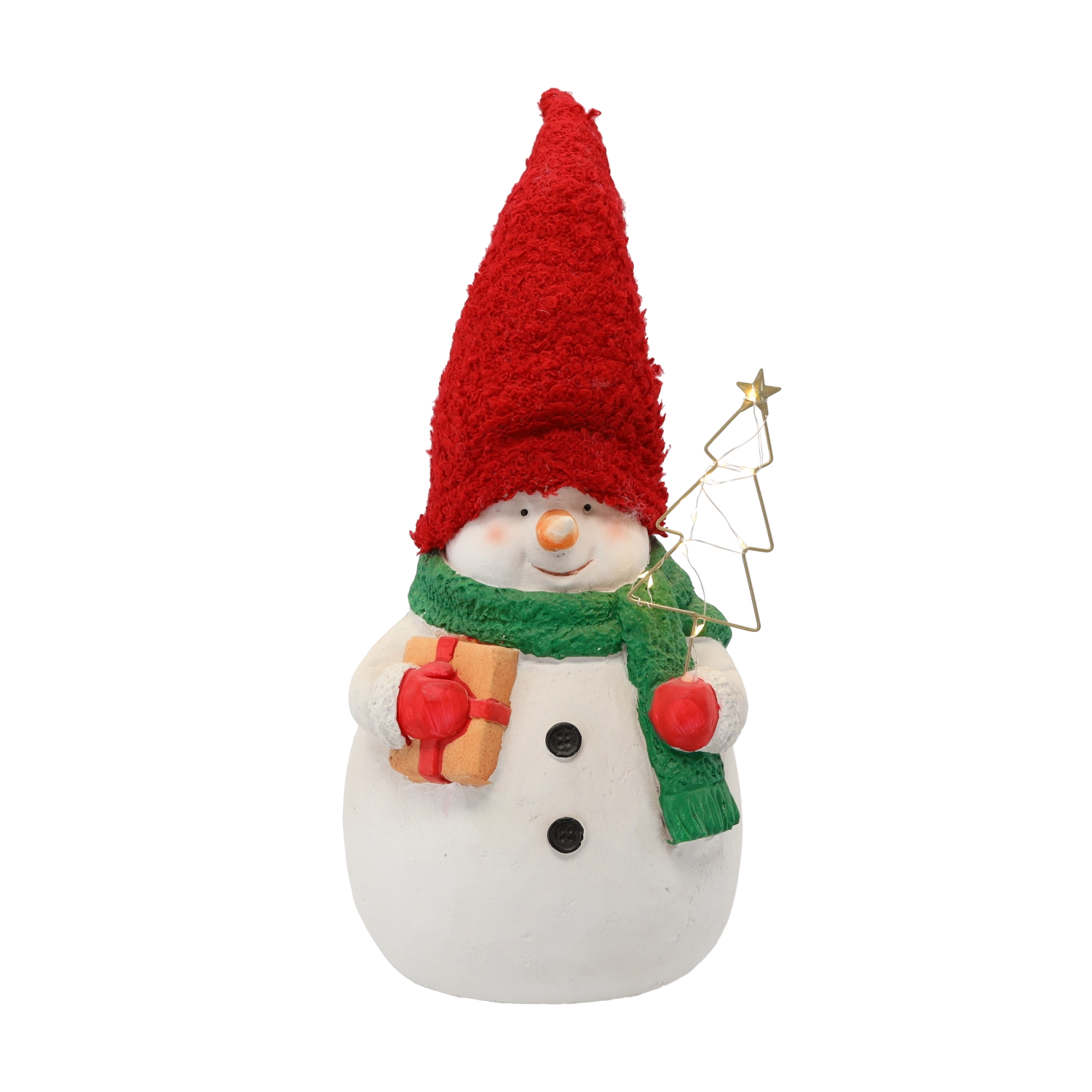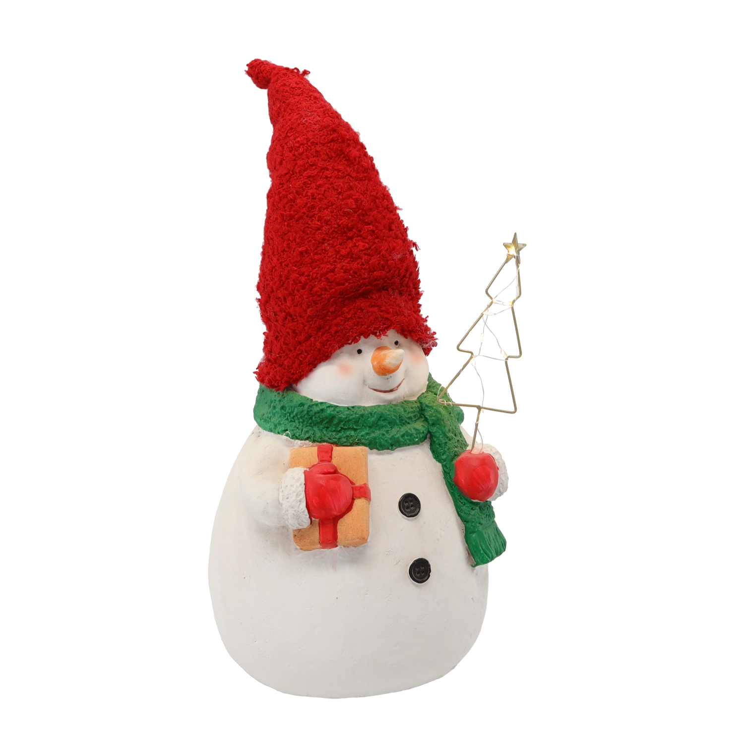Figurine de neige bonhomme de neige de Noël avec bonnet rouge et éclairage LED