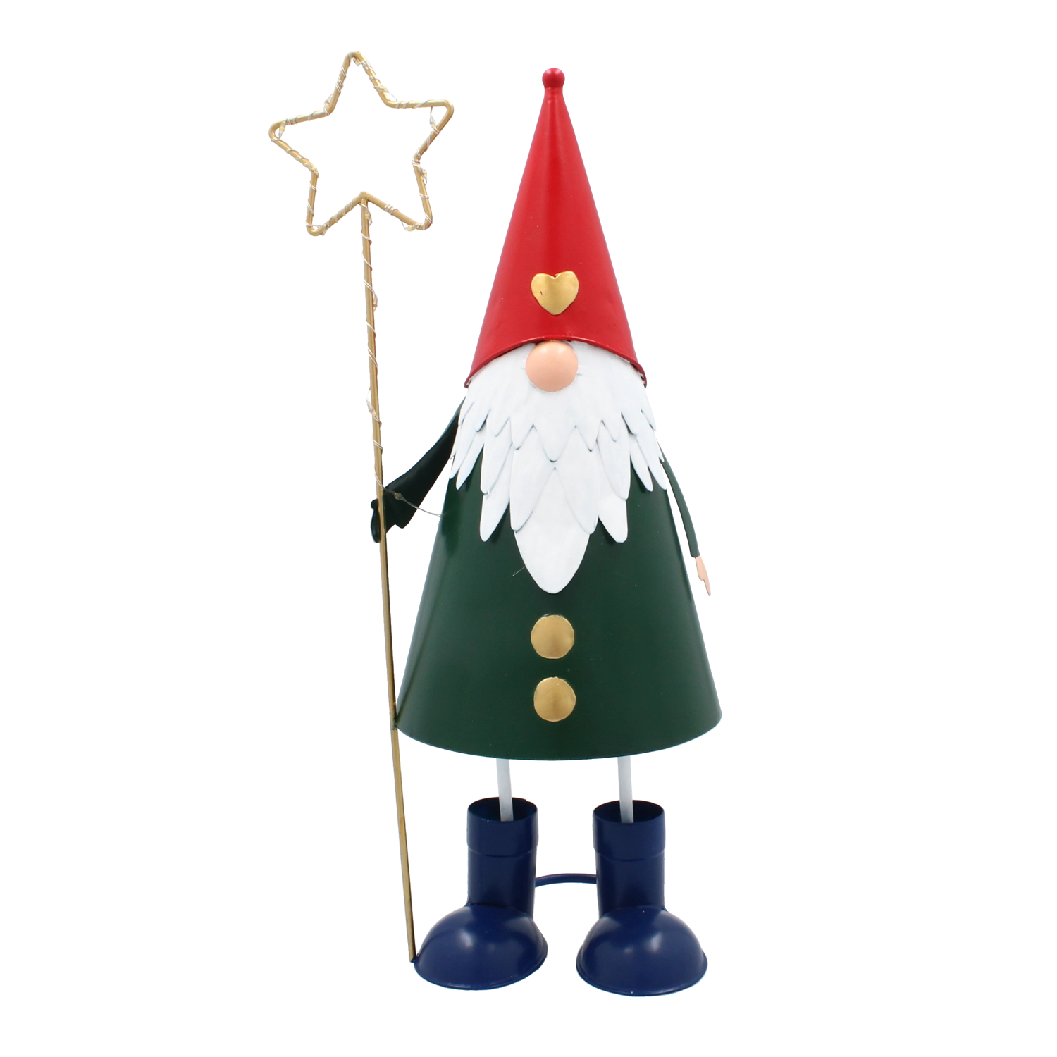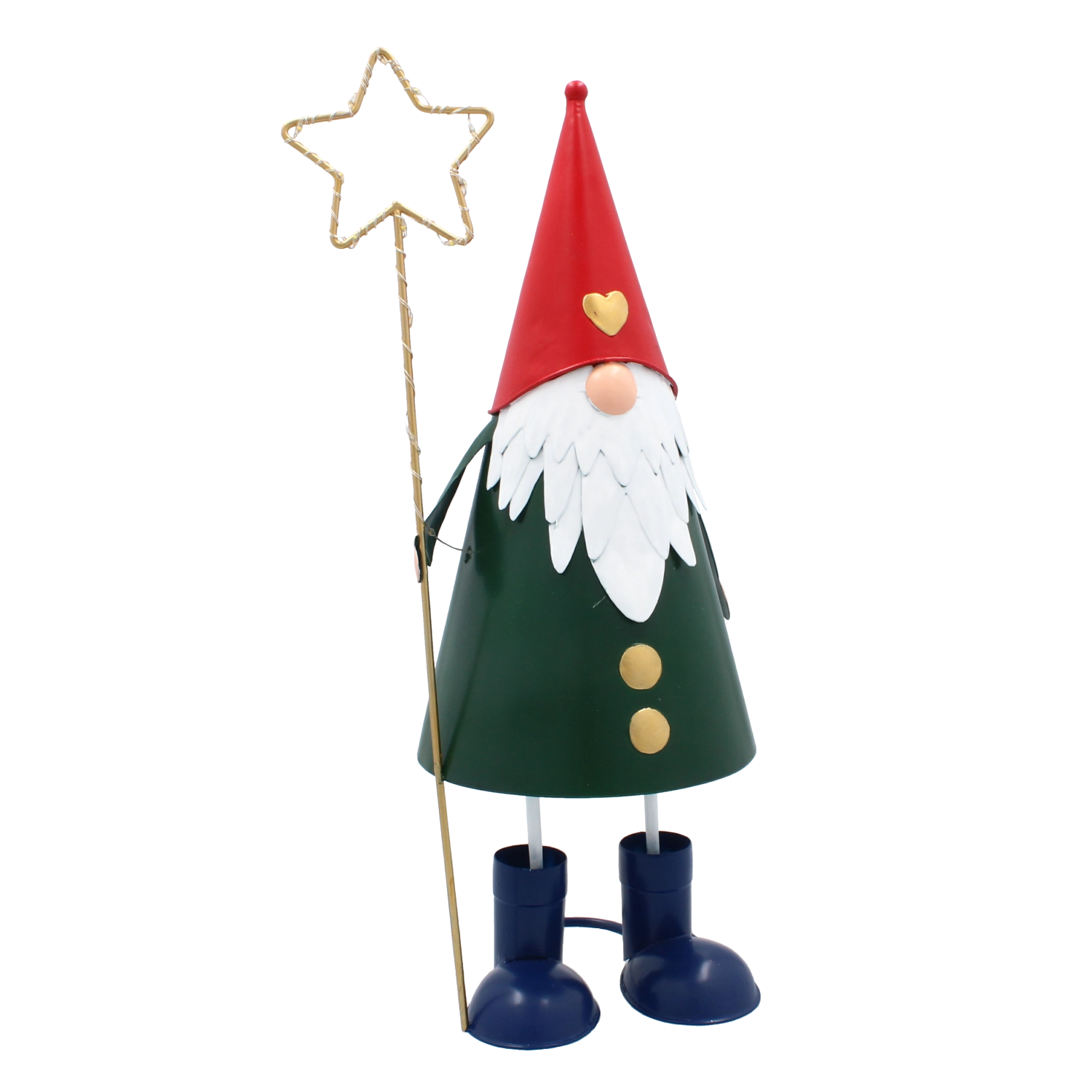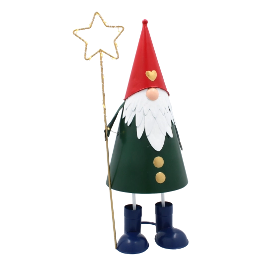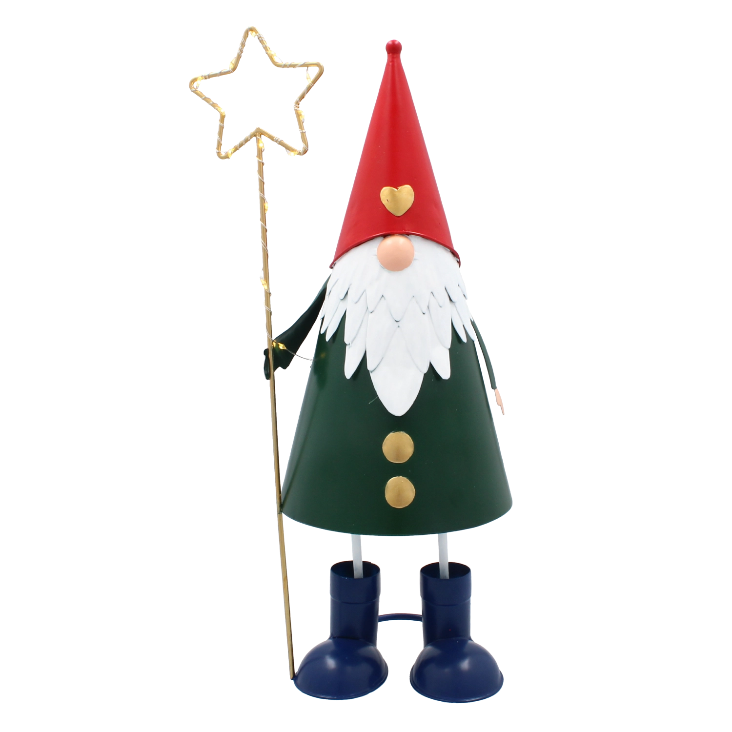 Ce lutin décoratif en métal allie look ludique et éclairage LED pratique. Sa silhouette haute et élancée avec bonnet rouge, corps vert et étoile dorée à la main apporte une touche stylée sur un rebord de fenêtre, une commode ou une table de fête. La lumière blanc chaud installe une ambiance conviviale dans chaque pièce.