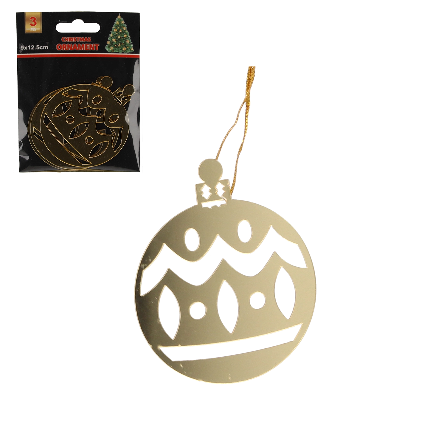 Boules de Noël dorées ajourées 8 × 6 cm, lot de 3 pièces