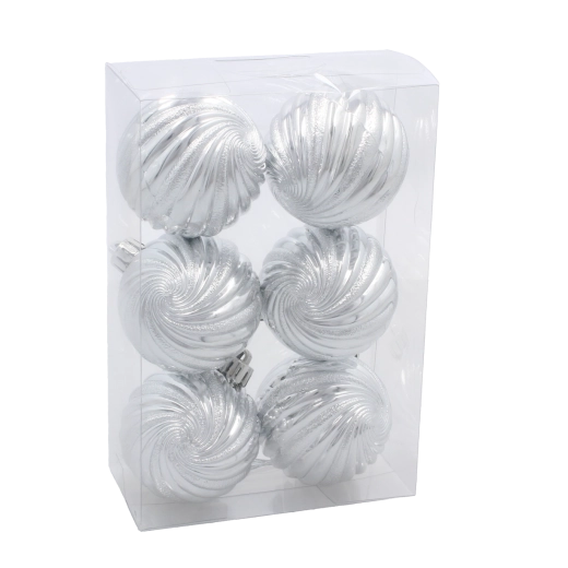 Donnez à votre sapin une brillance classique avec un set de six boules de Noël de 6 cm de diamètre, en rouge, or et argent. Les décorations sont en matériau incassable, légères et sûres pour les enfants, avec un relief spiralé brillant et des ficelles pratiques pour un accrochage facile.
