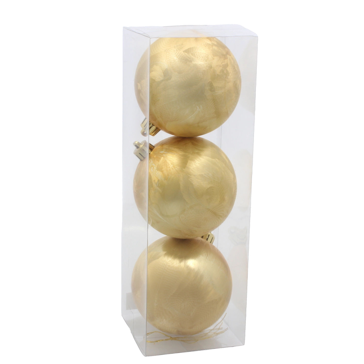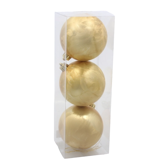 Chaque boule est équipée d’une attache dorée solide pour une suspension rapide sur les branches ou les crochets. L’emballage de 3 pièces est parfait comme set complémentaire à votre décoration existante ou comme base d’une nouvelle décoration.