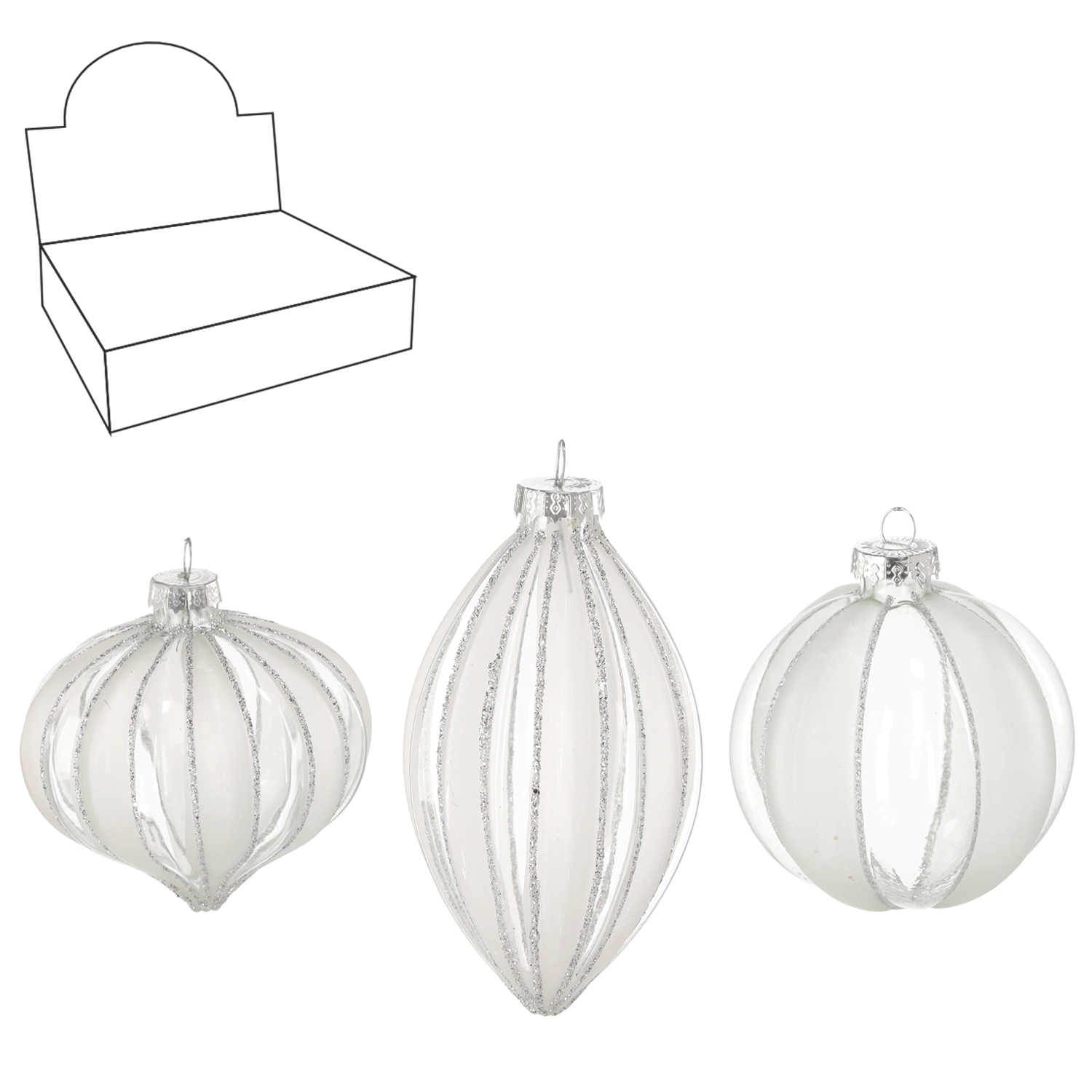 Des ornements en verre élégants et transparents illumineront chaque sapin. L’emballage contient un assortiment de formes et de décors qui apportent une touche unique à votre décoration. Finition précise et ornementation délicate pour une atmosphère véritablement festive. Verre transparent, mix de motifs et de formes, décor à l’aspect artisanal et style intemporel se combinent à merveille avec les autres décorations.