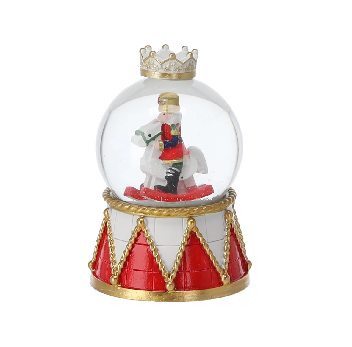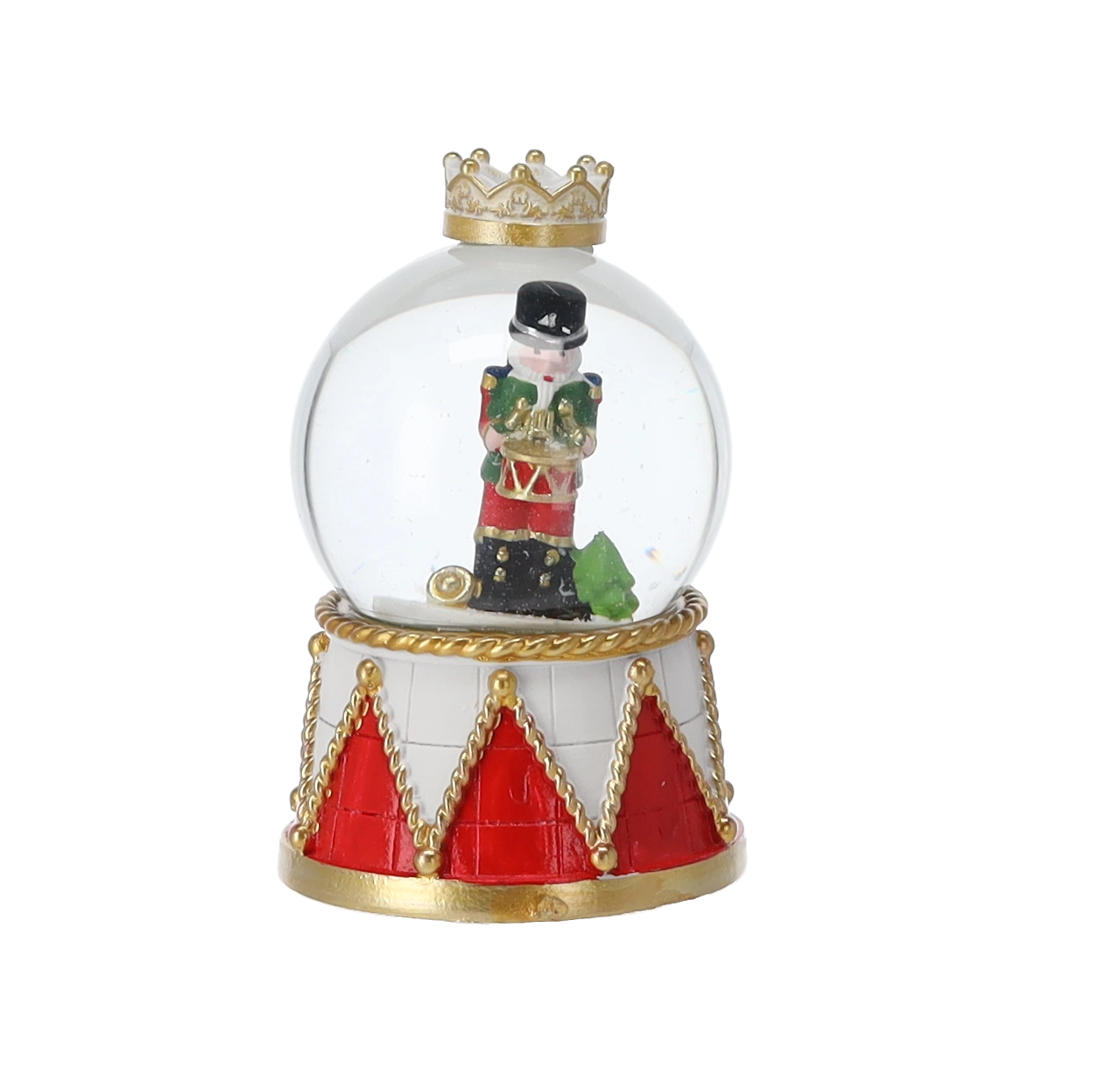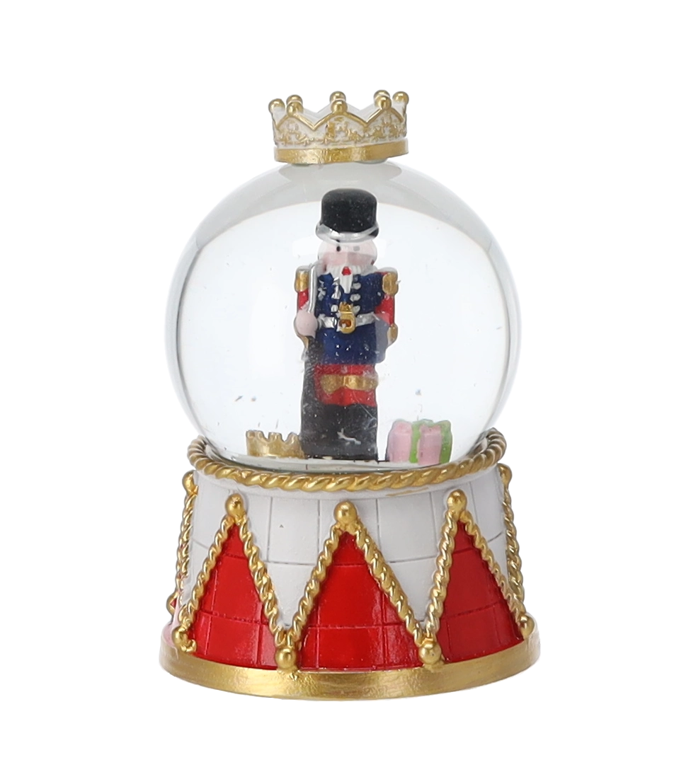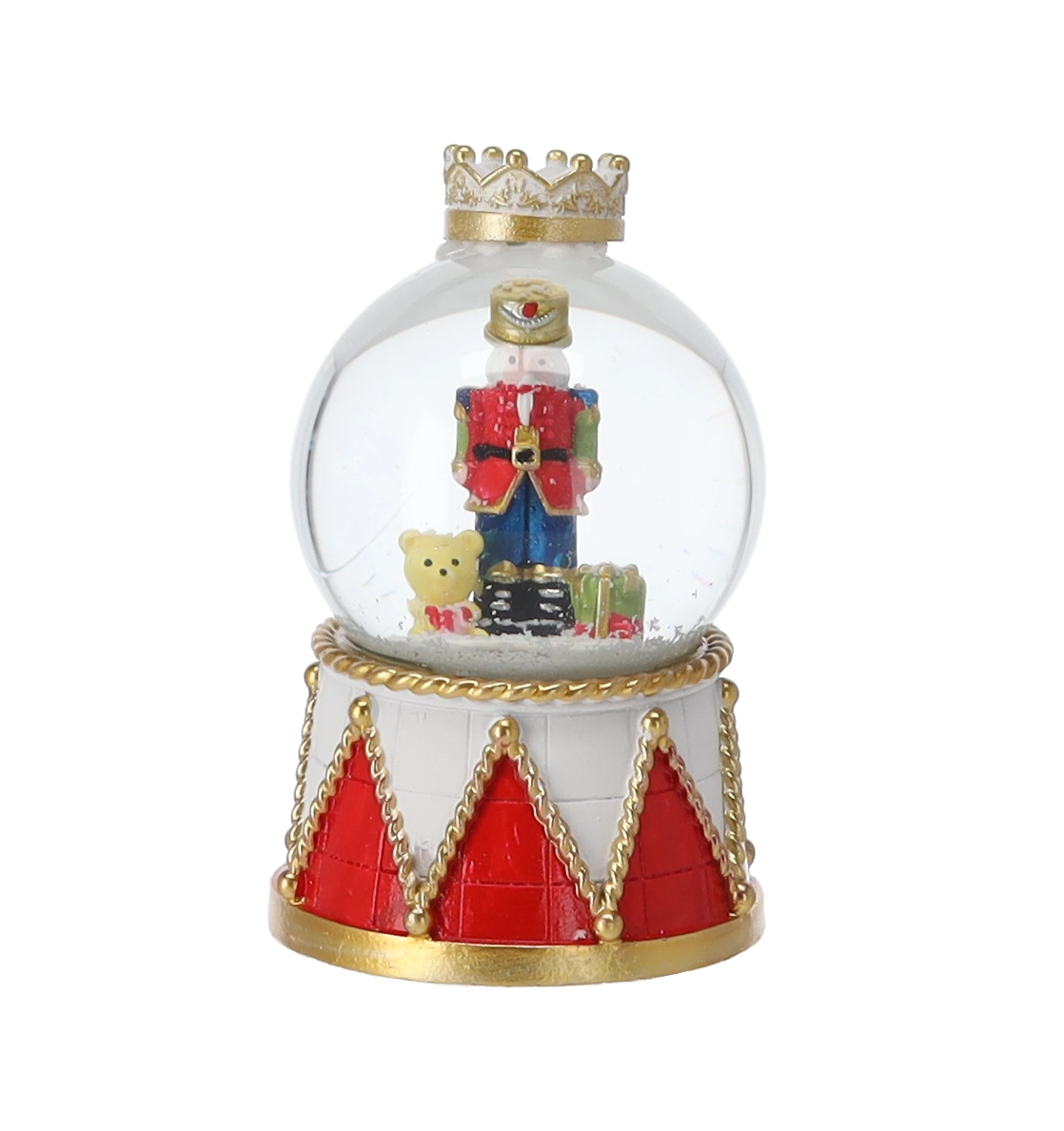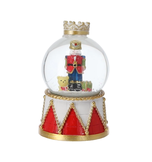 Chaque pièce est ornée d’un dôme en verre transparent et d’un socle décoratif au design tambour rouge‑or avec couronne. Ses dimensions compactes permettent une installation sur table basse, étagère ou table de fête. Grâce à l’assortiment de motifs de casse-noisettes, vous l’assortirez aisément aux autres ornements.