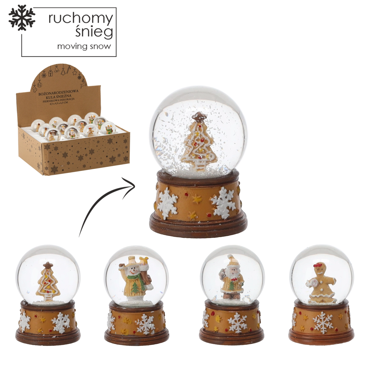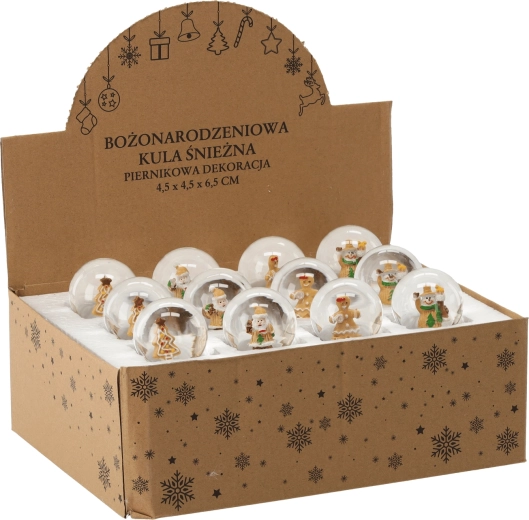 Boule à neige de Noël – décoration en pain d’épices, motifs assortis 4,5 × 4,5 × 6,5 cm