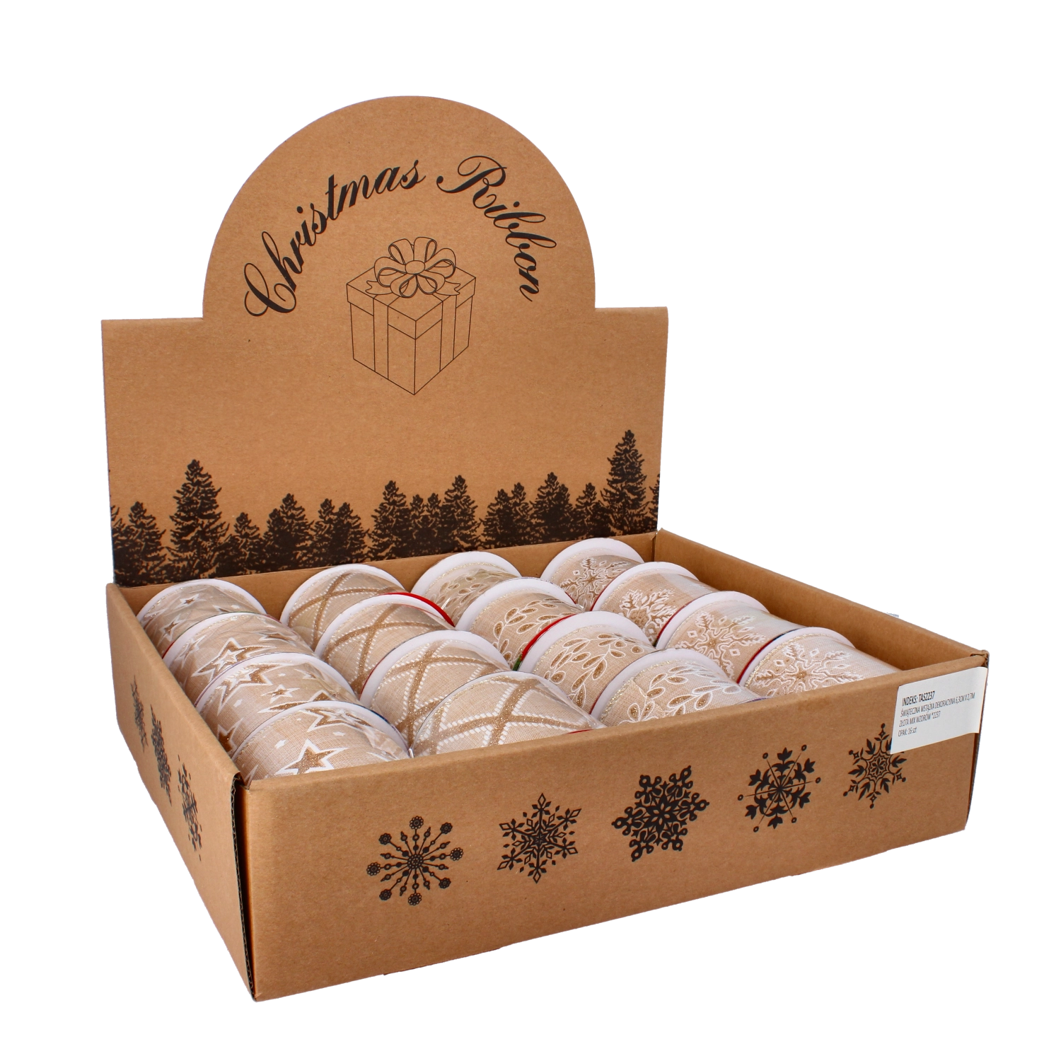 Ruban décoratif de Noël doré 6,3 cm × 2,7 m, motifs assortis, 16 pcs