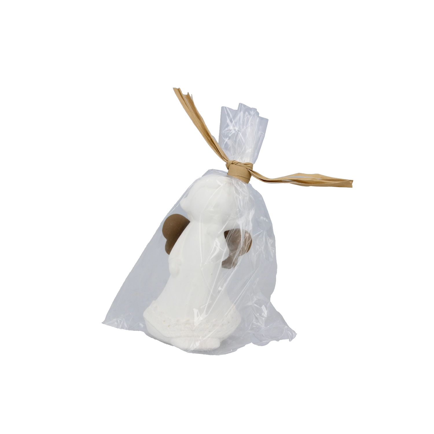 Un ange discret avec une fleur qui inspire un sentiment de calme et de bien-être, idéal pour compléter des décorations festives ou à l’année.