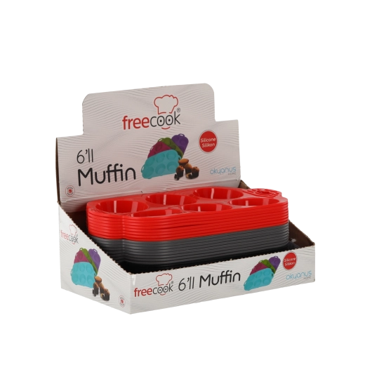 Pratique, ce moule en silicone pour cuire jusqu’à six muffins à la fois garantit une cuisson uniforme, un démoulage facile et antiadhésif et un nettoyage simple. Fabriqué en silicone de qualité alimentaire, il est résistant aux températures de -40 °C à +220 °C et convient au four, au micro-ondes et au congélateur.