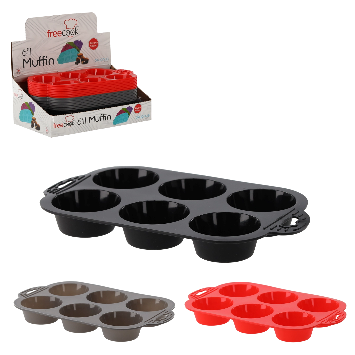 Moule à muffins en silicone avec 6 cavités et poignées latérales