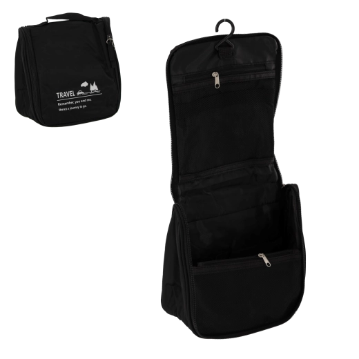 - Organisation claire – plusieurs poches et compartiments pour cosmétiques et articles d’hygiène