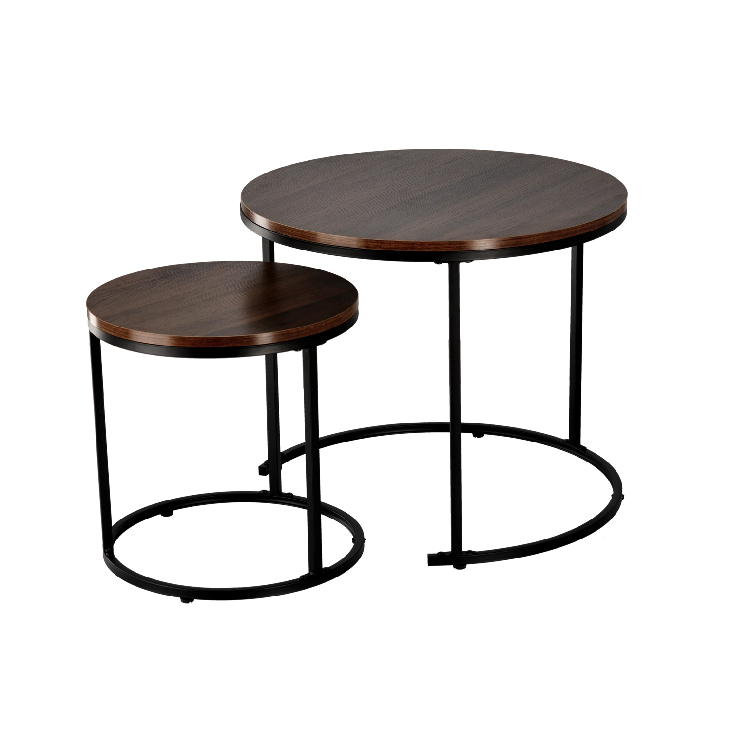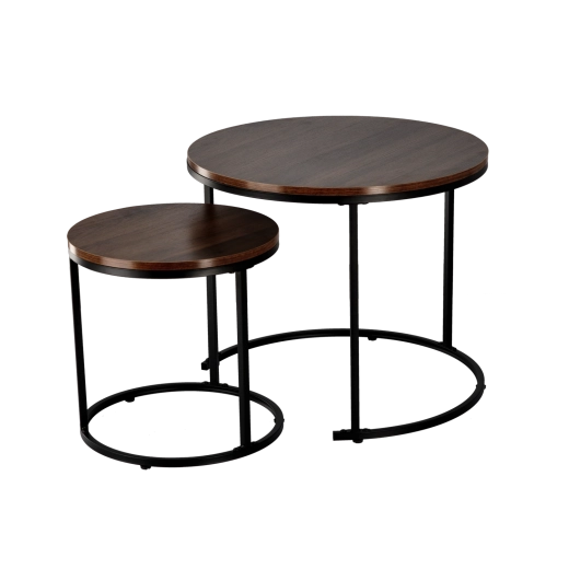 L’ensemble de deux tables apporte flexibilité et style à tout salon. La plus petite peut être partiellement glissée sous la plus grande pour gagner de la place et offrir un accès confortable depuis le canapé. Un cadre métallique stable en noir et un plateau facile d’entretien au décor bois composent une combinaison intemporelle qui souligne le caractère de votre intérieur.
