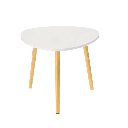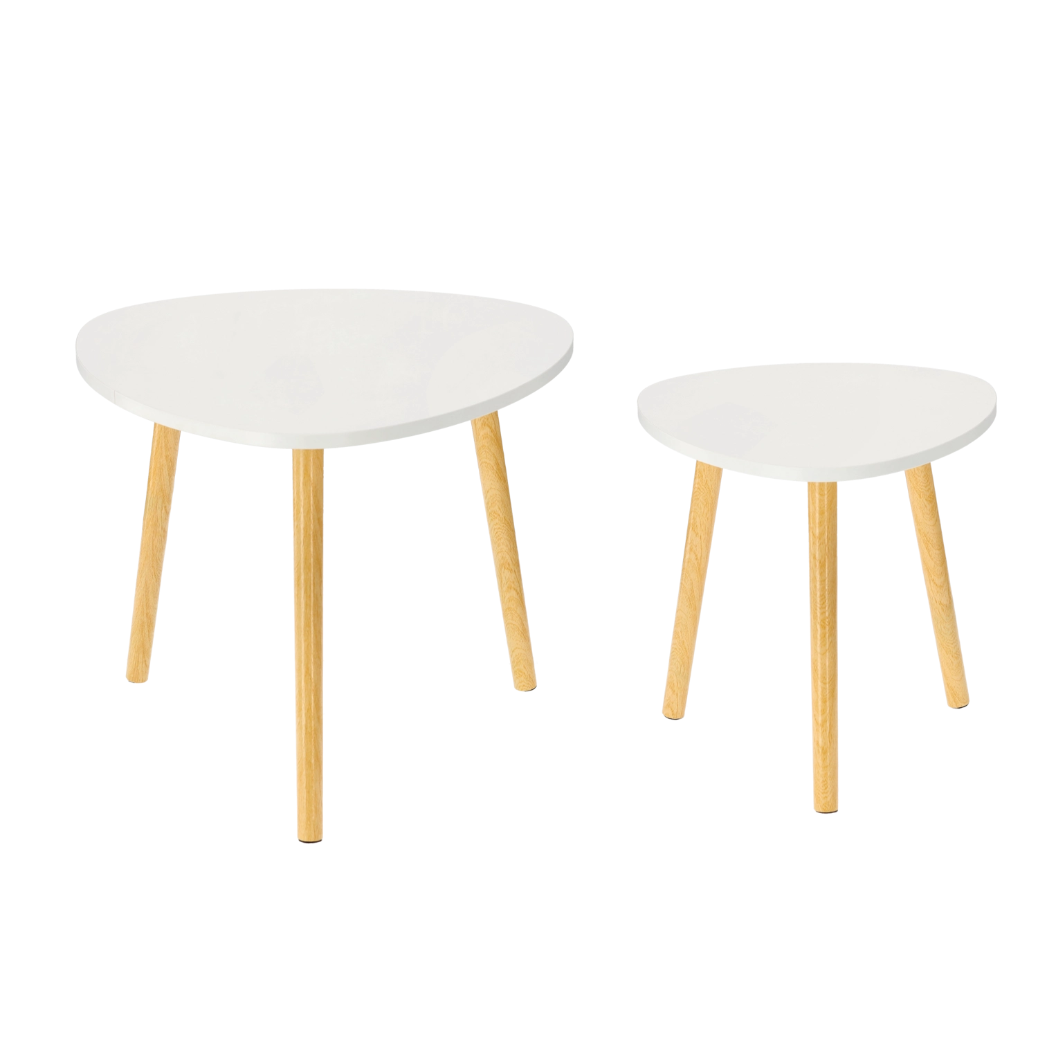 Un ensemble stylé de deux tables basses associant un plateau blanc et des pieds en bois naturel apporte un minimalisme scandinave, une silhouette légère et une grande polyvalence à tout intérieur. La forme triangulaire/arrondie asymétrique est originale et convient au salon, à la chambre comme au bureau.