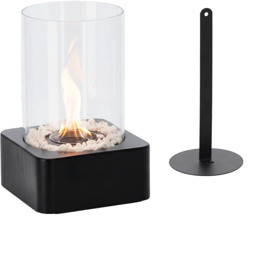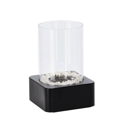 La cheminée bio de table est un accessoire stylé qui allie look moderne et lumière naturelle de la flamme. Sa base noire mate avec galets décoratifs et son cylindre en verre forment un pare-vent sûr et garantissent une combustion stable pour une ambiance cocooning sans installation complexe.