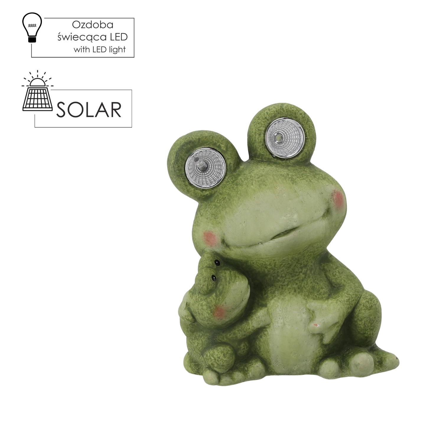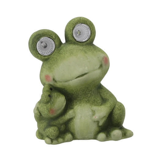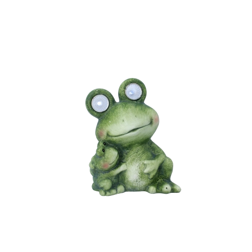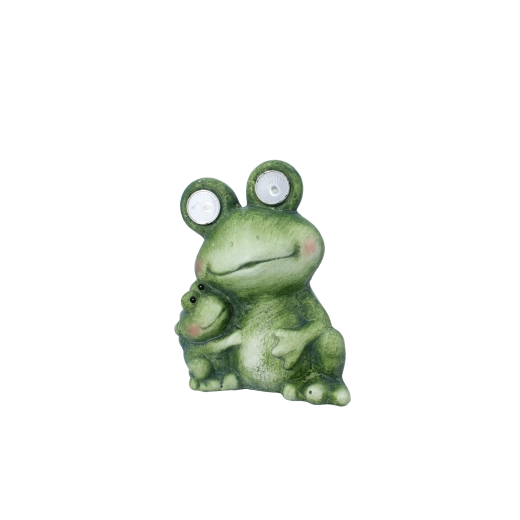 Cette charmante figurine de grenouille aux yeux lumineux apporte une touche de fantaisie et de lumière à votre espace. La grande grenouille intègre des LED dans les yeux qui servent de douce veilleuse d’orientation, tandis que la petite grenouille non lumineuse renforce l’ambiance familiale de l’ensemble. Grâce à ses dimensions compactes, elle trouvera parfaitement sa place sur un rebord de fenêtre, des marches, près de l’entrée de la maison ou parmi les plantes sur la terrasse.