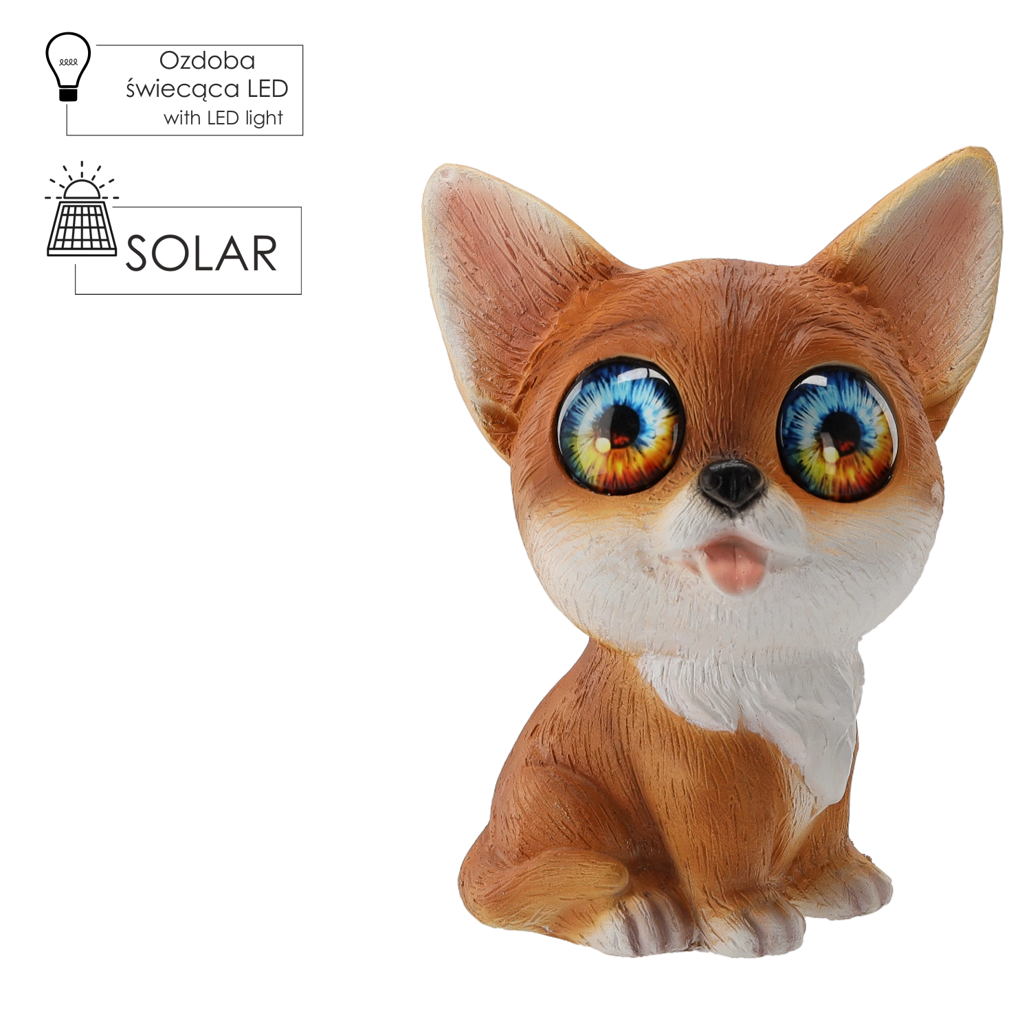 Apportez une touche de conte à votre jardin avec ce renard décoratif dont les yeux brillent doucement d’une lumière blanc chaud grâce à deux LED intégrées. Le panneau solaire recharge la batterie intégrée pendant la journée et la lumière s’allume automatiquement à la tombée de la nuit.