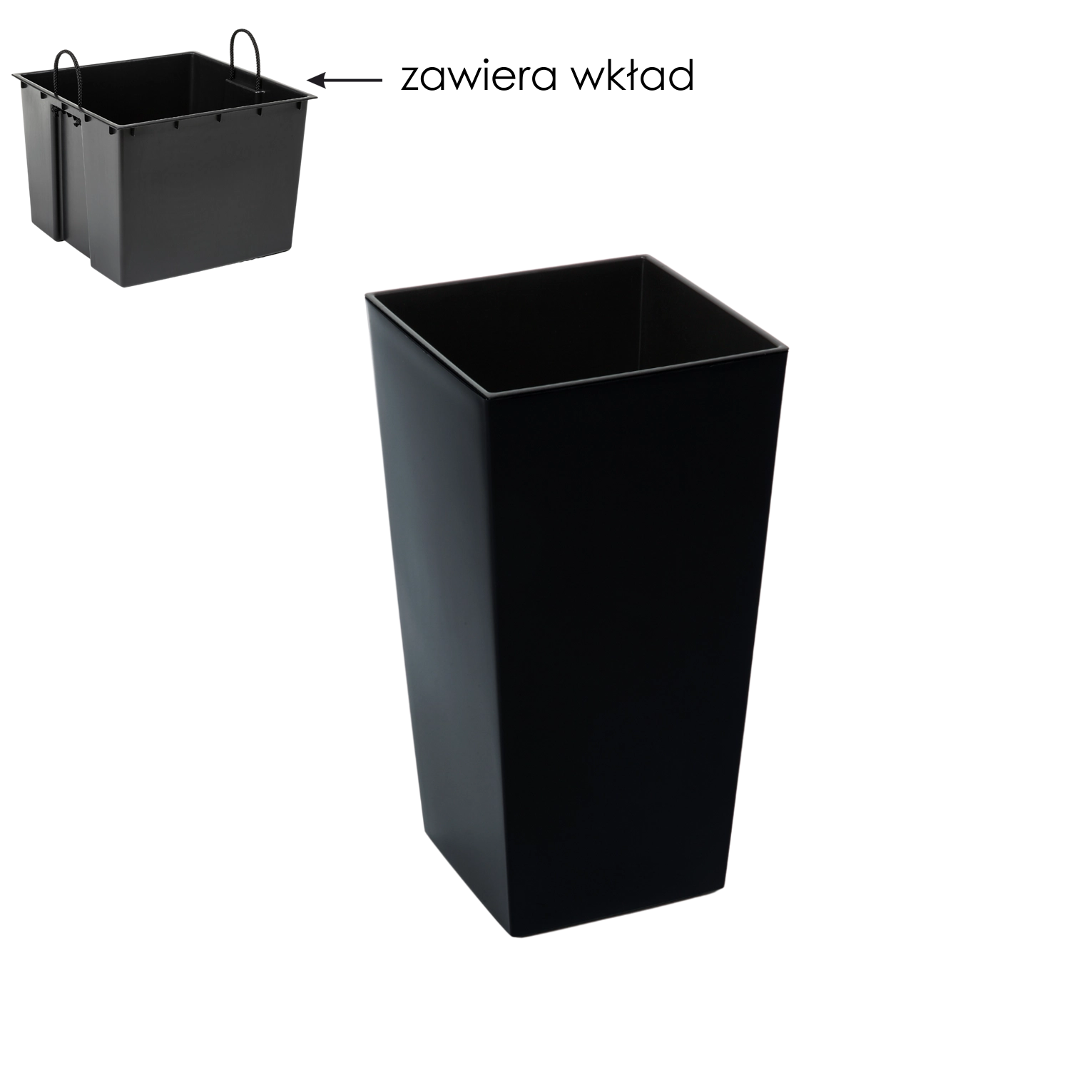 Pot Finezja 19 × 19 cm avec insert – pot de fleurs en plastique noir pour intérieur et extérieur
