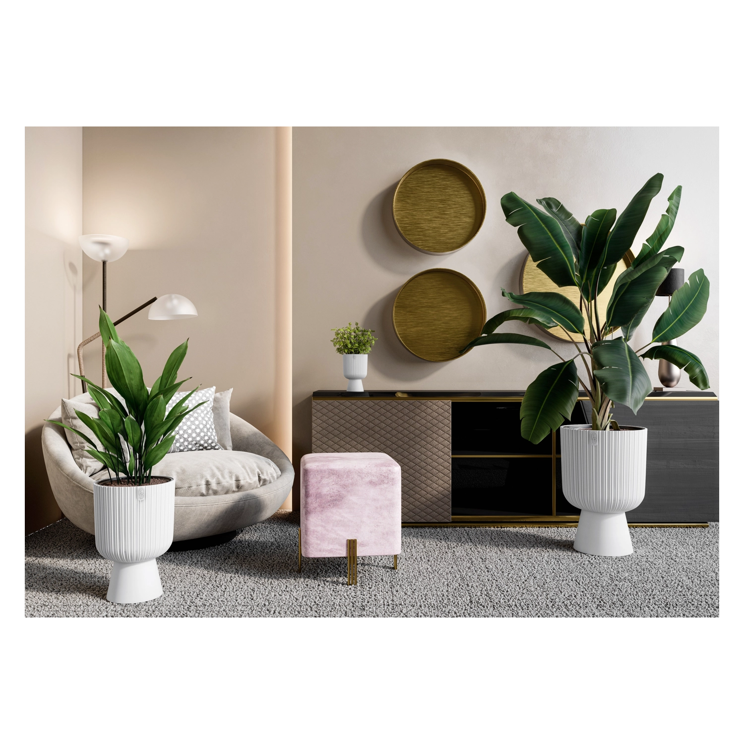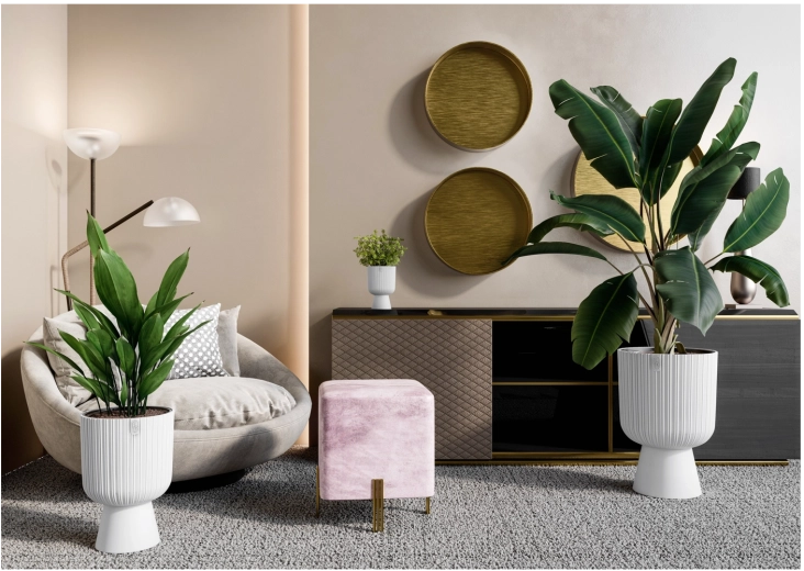Le cache-pot KELI Mika allie look intemporel et conception pratique. Grâce à son plastique léger et résistant, il se manipule aisément ; la couleur blanche mate et les fines rainures verticales apportent à tout espace une allure épurée et sophistiquée. La base élargie assure une excellente stabilité, même pour les plantes plus hautes.