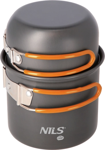 NILS Camp propose un set de vaisselle pratique pour la randonnée, le camping et les sorties en eau vive. La casserole et le poêlon/poêle en aluminium anodisé résistent à la corrosion et aux intempéries, tandis que les poignées en acier inoxydable avec revêtement en caoutchouc améliorent la sécurité de la prise en main. Grâce à la conception empilable et au filet de transport, l’ensemble se range facilement et ne prend pratiquement pas de place.