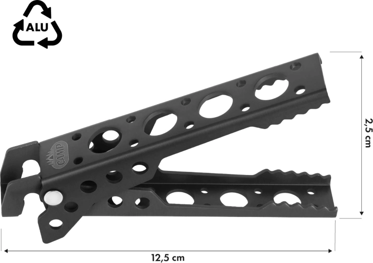 Avec une longueur de 12,5 cm et une largeur de 2,5 cm, la pince se glisse facilement dans une poche, un sac à dos ou la boîte à gants. Elle offre une prise en main sûre et confortable, pour déplacer même des récipients chauds en toute sécurité et avec assurance.