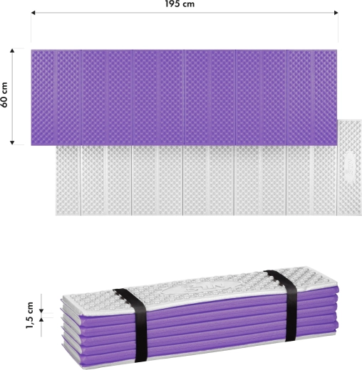 Grâce à sa structure en accordéon, il se plie rapidement en dimensions compactes et se glisse facilement dans un sac à dos. Après usage, il suffit d’essuyer la surface avec un chiffon humide. Les dimensions généreuses 195 × 60 × 1,5 cm offrent un soutien confortable même aux utilisateurs plus grands, et la valeur R de 2,0 convient à une utilisation trois saisons.