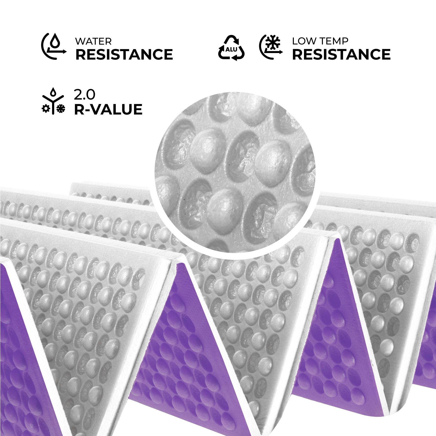 Réfléchit la chaleur corporelle vers l’utilisateur ou isole du sol froid selon l’orientation du tapis. Convient à une utilisation trois saisons.