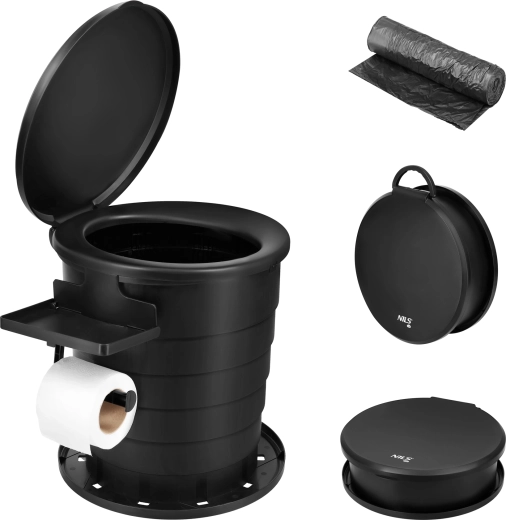 La toilette portable pliante NILS Camp se distingue par ses dimensions minimales une fois pliée (hauteur seulement 11 cm), ce qui permet de la ranger facilement dans un coffre, un sac à dos ou un garage. Une fois déployée, elle offre une assise confortable de 34 × 36 cm en matériaux résistants ABS et PP, avec une capacité de charge allant jusqu’à 150 kg. Grâce au système à sec, elle s’entretient facilement et reste hygiéniquement propre et est immédiatement prête à l’emploi.