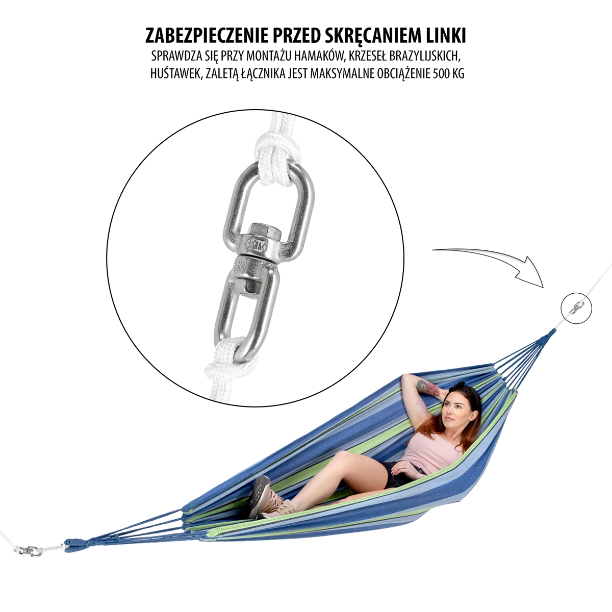 Le joint pivotant assure une rotation douce et empêche l’emmêlement des cordes ou des chaînes, ce qui augmente le confort et la sécurité d’utilisation.