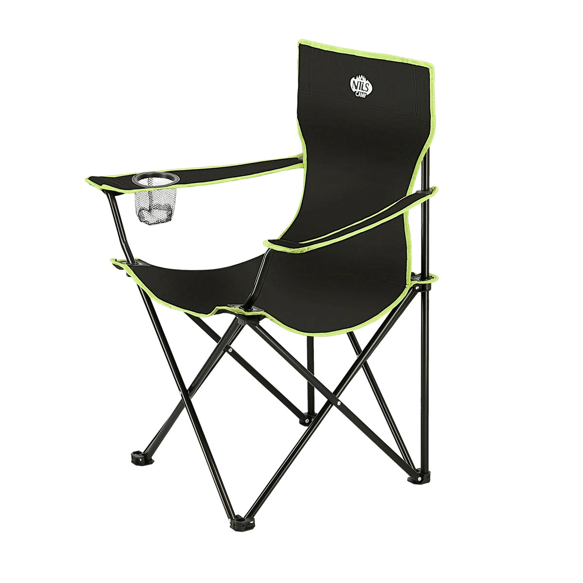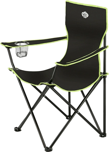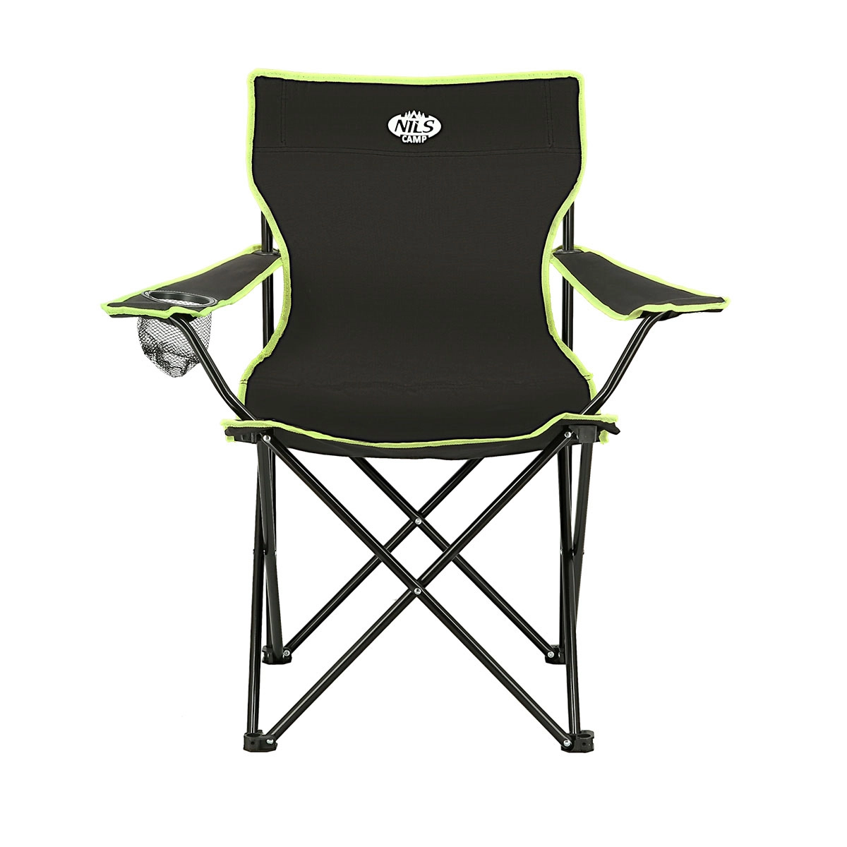 Profitez du confort partout dans la nature. La chaise de camping pliante NILS CAMP, en noir élégant avec détails citron vert, allie faible poids et haute résistance. Sa housse en tissu Oxford 600D est robuste, facile à entretenir et résiste à la pluie comme à la neige. Des renforts en plastique aux zones sollicitées et des patins carrés augmentent la stabilité sur surfaces dures ou souples.