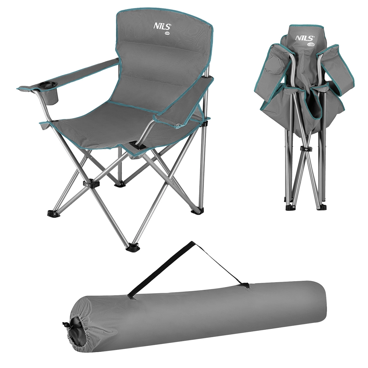 La chaise de camping pliante NILS Camp, confortable et résistante, est idéale au bord de l’eau, pour la pêche, les festivals et le camping. Elle offre une structure en acier robuste, une housse résistante Oxford 600D, des accoudoirs réglables et un porte-gobelet intégré. Grâce à sa capacité de charge de 130 kg et à son pliage rapide dans un sac de transport, c’est le choix parfait pour toute aventure en plein air.