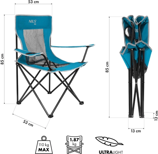 Fauteuil de camping pliant NILS Camp NC3302 bleu-gris