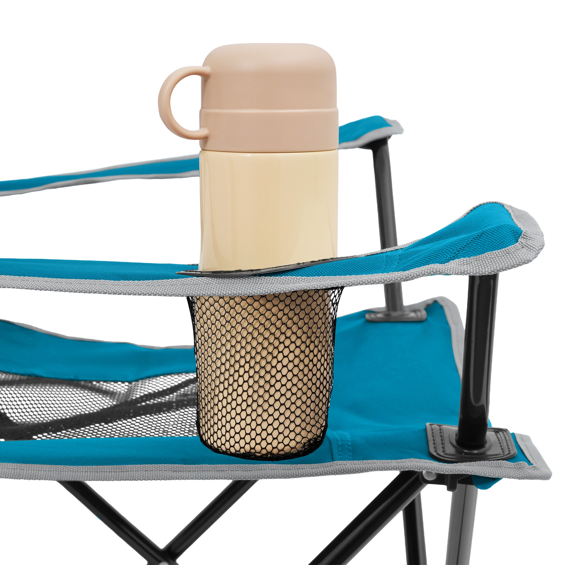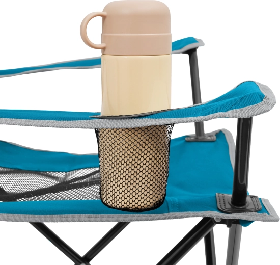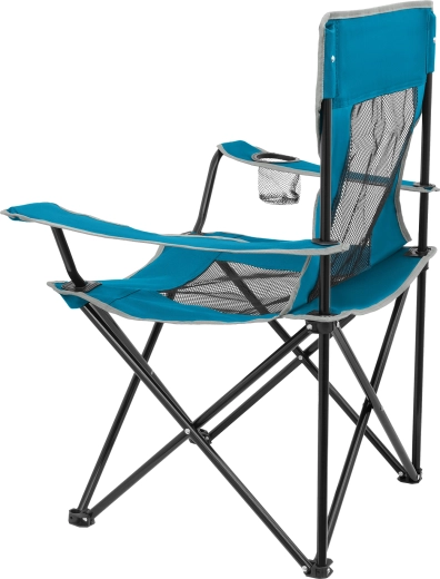 Fauteuil de camping léger et stable pour le camping, les festivals et la pêche. Il offre une structure durable, une maille respirante, un porte-gobelet intégré et des dimensions compactes une fois plié pour un transport facile.