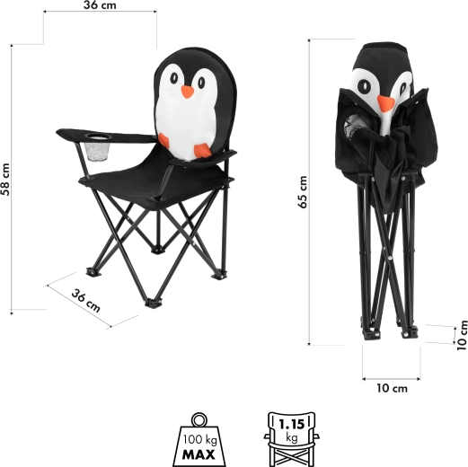 Chaise de camping pliante pour enfants NILS Fun pingouin