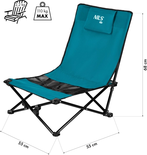 La chaise de plage pliante NILS Camp est un choix idéal pour la plage, le lac, le camping ou les festivals. Son cadre en acier avec revêtement par poudre résiste à la corrosion et aux intempéries, tandis que la housse en polyester 600D avec PVC est résistante à l’abrasion, à l’humidité et facile à nettoyer. Grâce à la forme ergonomique de l’assise et du dossier, vous profitez d’un grand confort même lors d’assises prolongées.