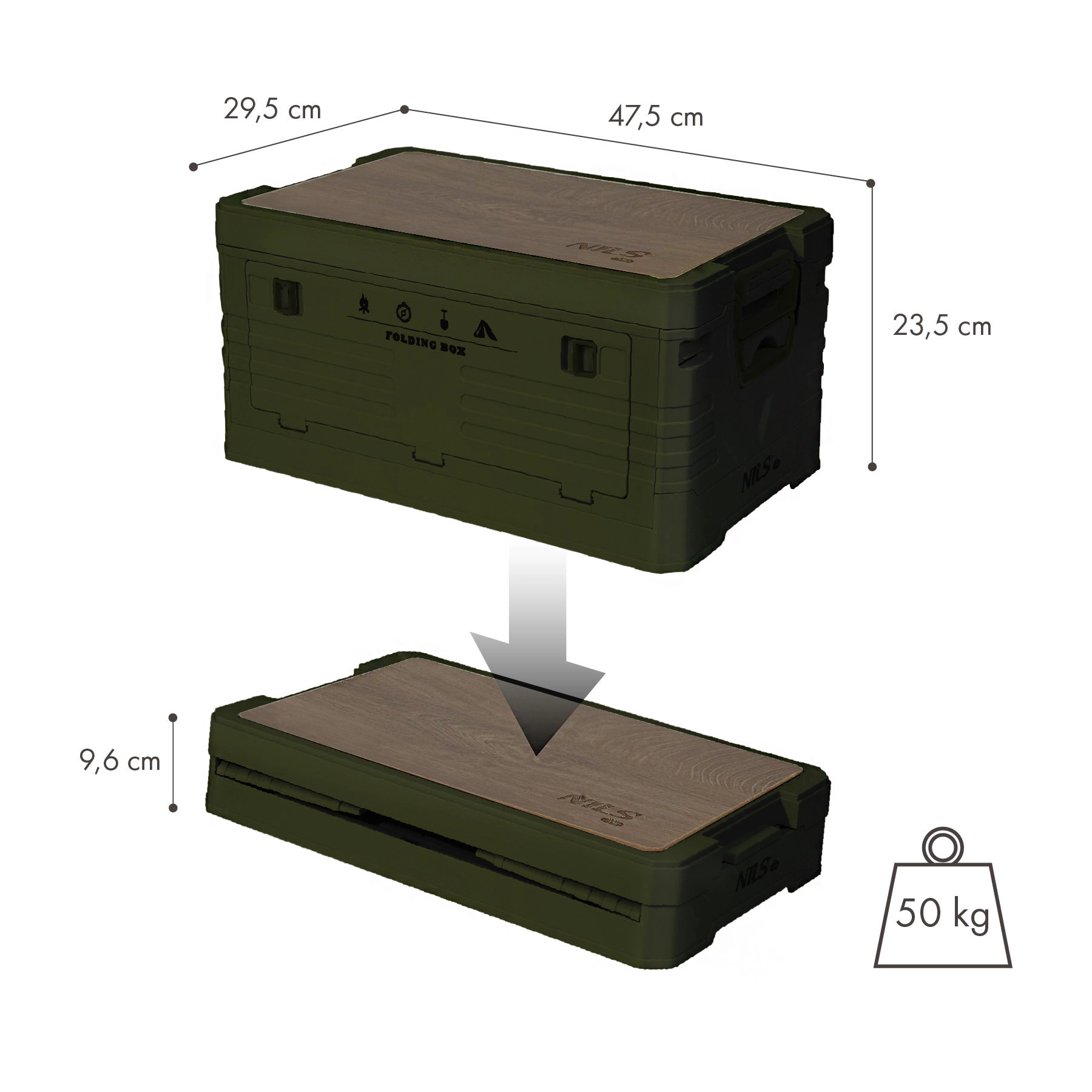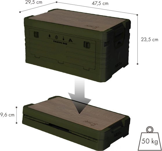 La boîte de rangement universelle NILS Camp est un excellent choix pour le camping, les voyages et l’organisation au quotidien. Le plateau en bois amovible transforme la boîte en table stable ou en plan de travail, tandis que la structure pliante économise de la place lors du transport et du stockage. Les parois solides en polypropylène résistant supportent des charges plus lourdes et protègent votre équipement.