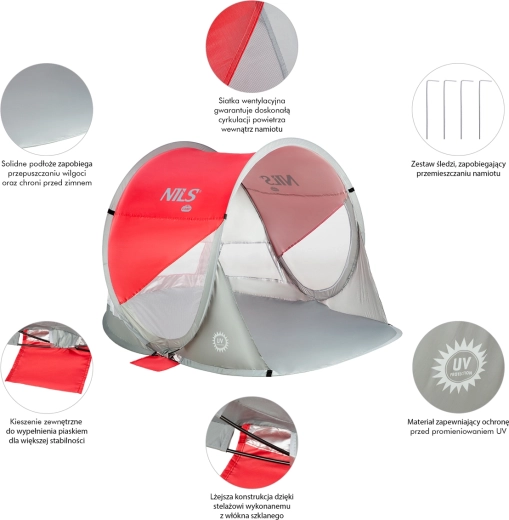La tente de plage auto-déployante NILS Camp est un excellent choix pour les journées chaudes au bord de l’eau. Grâce à son système automatique, elle se déploie en quelques secondes et se replie tout aussi facilement dans un sac rond compact avec poignée. Elle offre une protection solaire fiable avec une réflectivité UV de 96 % et crée un espace ombragé pour se détendre.