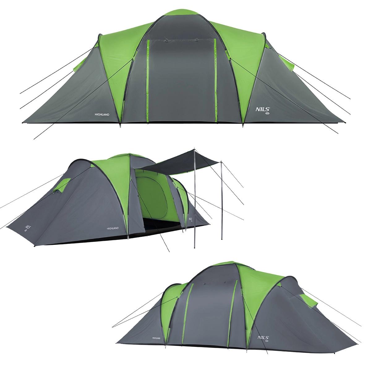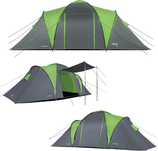 Profitez du confort et de la sécurité lors de vos sorties camping avec la tente familiale NILS Camp Highland. Sa construction double-toit, ses matériaux de qualité et une colonne d’eau de 4000 mm H2O sur le double-toit comme sur le tapis de sol protègent de la pluie et du vent. Le tissu résistant aux UV et le traitement auto-extinguible augmentent la sécurité et la longévité de la tente. Grâce aux moustiquaires, aux ouvertures de ventilation et aux chambres respirantes, l’intérieur conserve un climat agréable sans condensation.