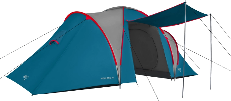 NILS Camp Highland IV est une tente familiale fiable conçue pour camper confortablement du printemps à l’automne. Deux chambres doubles séparées et un grand vestibule avec tapis de sol intégré offrent suffisamment d’espace pour dormir et ranger votre équipement. Haute résistance à la pluie (4000 mm H2O), coutures thermosoudées et structure stable en fibre de verre protègent par mauvais temps.