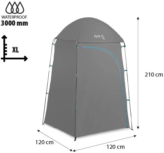 Profitez de l’intimité partout avec la cabine NILS Camp NC3025, légère et stable. Elle offre jusqu’à 210 cm de hauteur et 120 × 120 cm d’espace pour s’habiller confortablement, se doucher ou installer des toilettes chimiques. Grâce au polyester 190T avec enduction PU et à une colonne d’eau de 3000 mm, elle protège de manière fiable contre la pluie. Montage rapide, toit amovible, moustiquaire et fenêtre de ventilation assurent le confort par tous les temps.