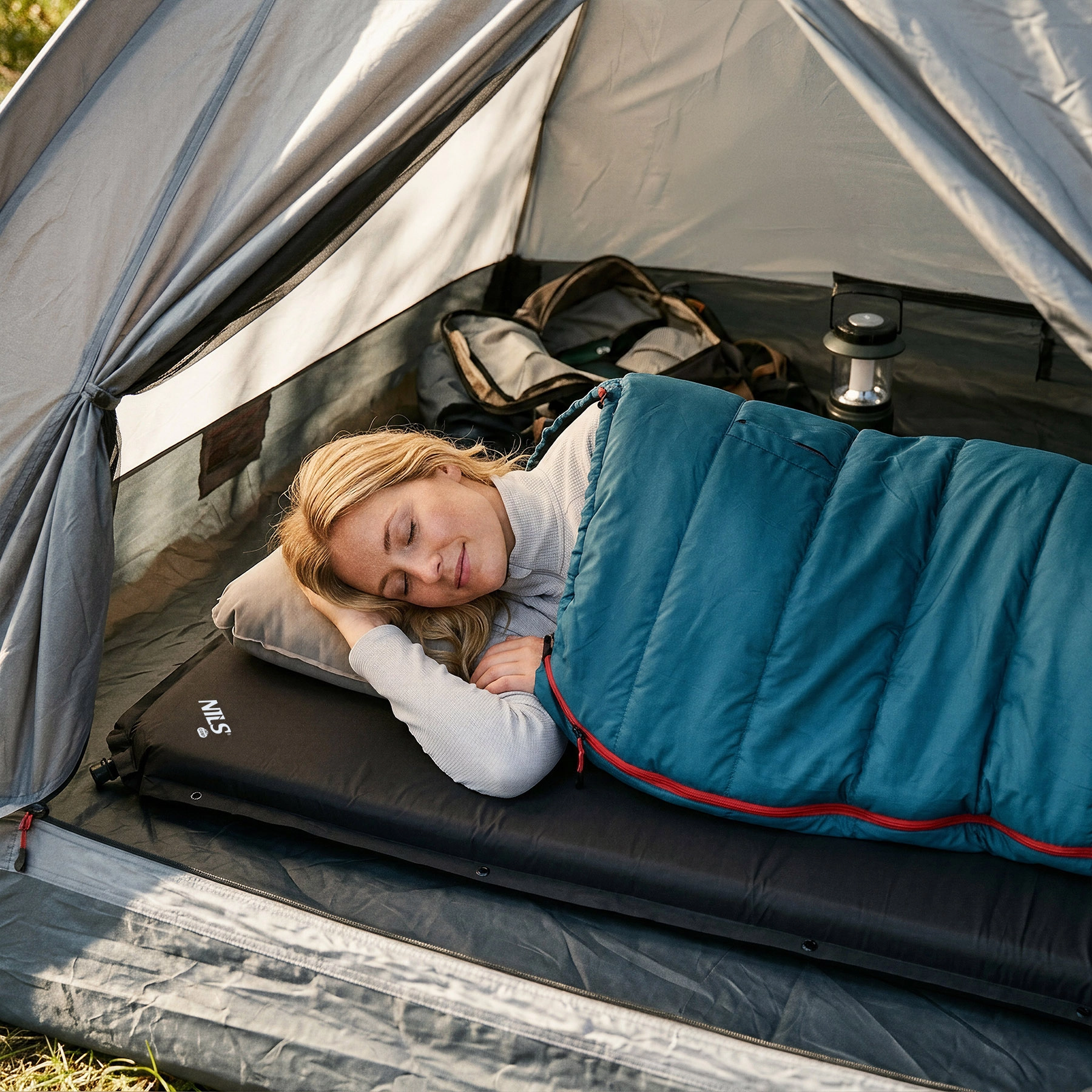 Matelas autogonflant léger et pratique NILS Camp pour un sommeil confortable en camping ou sous tente. Grâce à sa valve autogonflante, il est prêt en un instant, offre une épaisseur confortable de 5 cm, un poids léger de 1,5 kg et se range facilement dans la housse fournie.