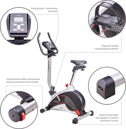 Vous recherchez un vélo d’appartement fiable pour un entraînement régulier à la maison ? Le HMS Premium M6995 combine un système de freinage magnétique avec une régulation automatique de la résistance (16 niveaux) pour des transitions de charge fluides et un fonctionnement silencieux. Grâce au volant d’inertie de 8 kg, le pédalage est régulier et respectueux des articulations, tout en étant suffisamment exigeant pour améliorer la condition physique et brûler des calories.