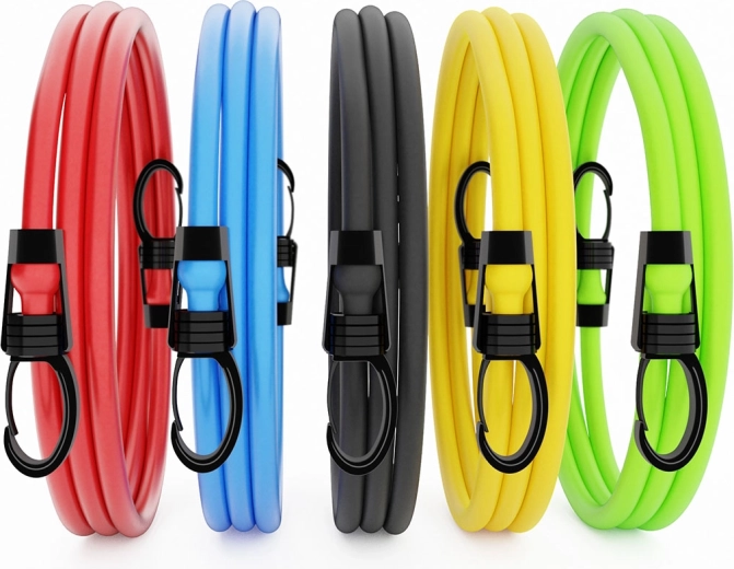 Le pack comprend des poignées confortables, des sangles de cheville et une ancre de porte, afin de réaliser des dizaines d’exercices pour le dos, les bras, les jambes et le centre du corps. Idéal à la maison, en voyage ou en extérieur – entraînez-vous efficacement, en silence et avec un minimum d’espace requis.