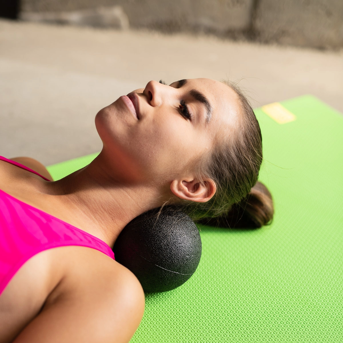 Placez la balle sous l’occiput et, par de légers mouvements, dénouez les points de tension. Idéal pour les longues périodes assises et après l’entraînement.