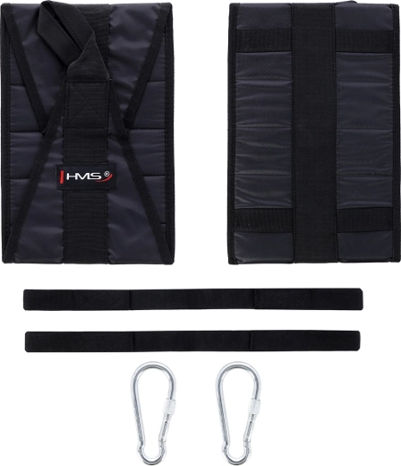 Les sangles abdominales suspendues HMS F4439 sont l’accessoire idéal pour renforcer les abdominaux, le core et les fléchisseurs de la hanche. Fixez-les simplement à une barre de traction à l’aide des mousquetons métalliques, passez les bras et entraînez-vous en réduisant au minimum la charge sur les épaules et les poignets. Leur finition de qualité avec un rembourrage épais offre un grand confort même lors de séries exigeantes.